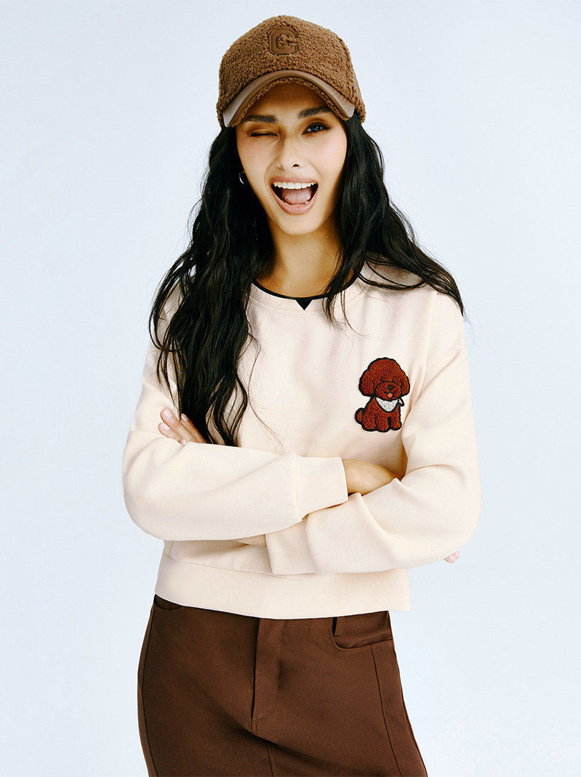 圓領設計,穩固舒適版型。袖身拼接異材質針織工藝,增添視覺線條層次感。前片字母印花與牙刷繡撞色可愛狗狗肉墊,可愛迷人。太空棉+內磨毛面料,外層挺版透氣、內層柔軟親膚。後背處更有貼心小掛鈎,讓寶貝穿衣也無須擔心項圈牽繩問題!