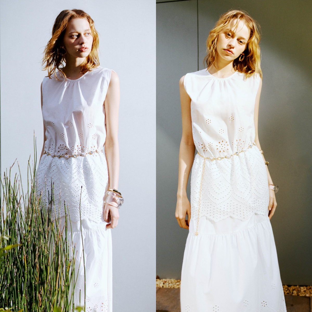 將夏日的明媚陽光,化作身上最迷人的光影。這套宛如晨露般清新的純白鏤空單品,選用高雅的純淨白為基底,透過層層細緻的滿版雕花紋理,為整體穿搭拉出無可挑剔的輕盈呼吸感。穿上它,宛如將和煦的日光輕輕披在身上,完美詮釋出專屬夏日的慵懶仙氣。