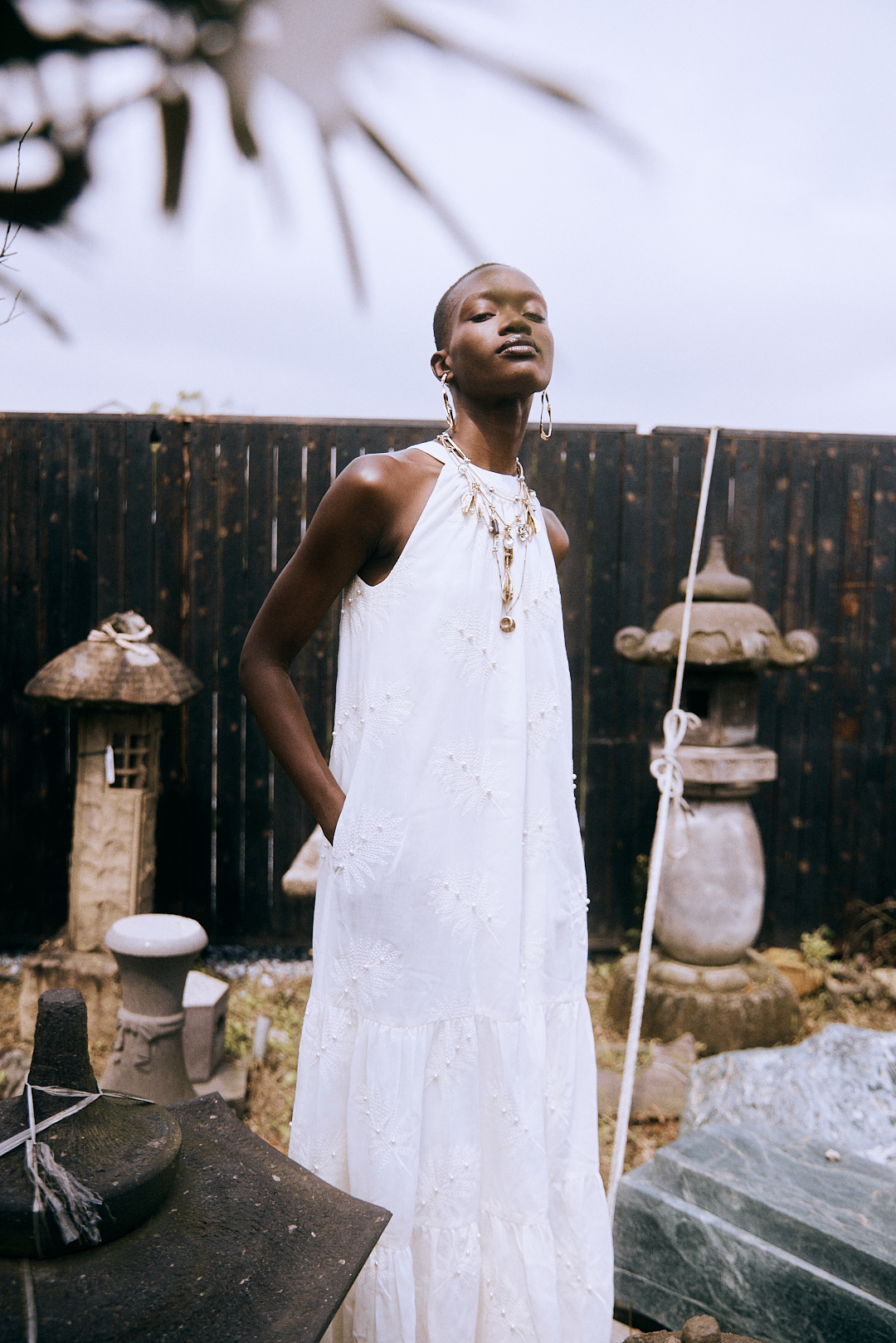 以清爽清新的色彩結合輕盈飄逸的材質,營造夏日微風拂面的清涼氛圍,圍繞盛夏花卉為主題,透過俐落荷葉邊、輕柔波浪裙襬與細緻蕾絲刺繡,展現自然低調卻鮮明的優雅氣息。