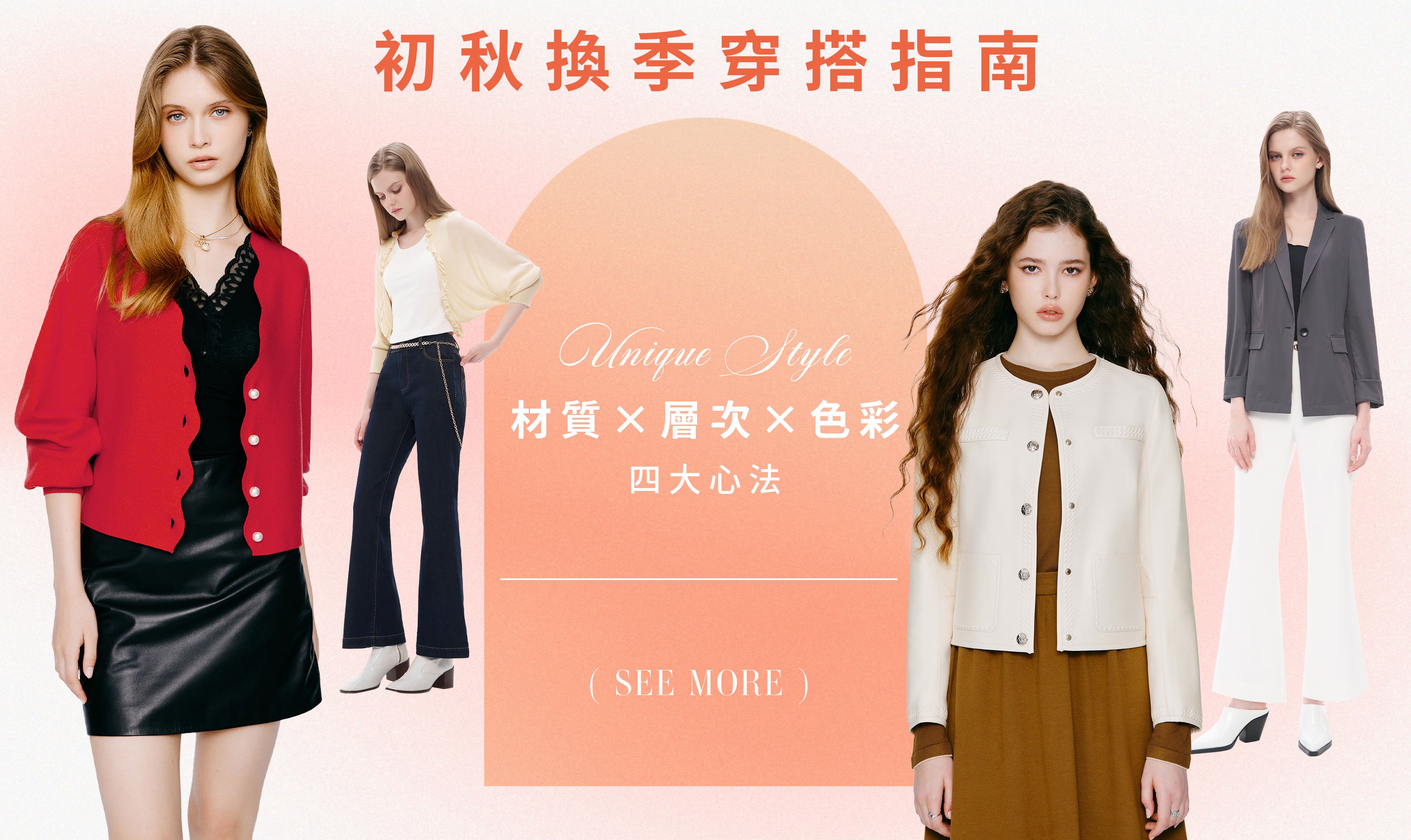 隨著早晚溫差逐漸明顯,衣櫃裡的穿搭也該悄悄轉換節奏。如何在忽冷忽熱的季節裡,穿得舒適又不失時尚感?關鍵就在於掌握 材質、層次與色彩及配件 這四大心法,讓造型兼具機能與美感,輕鬆展現初秋魅力。