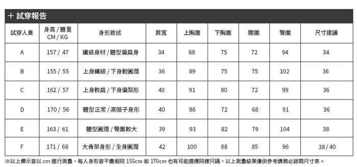 | 尺碼 | 34 XS | 36 S | 38 M | 40 L | ||||