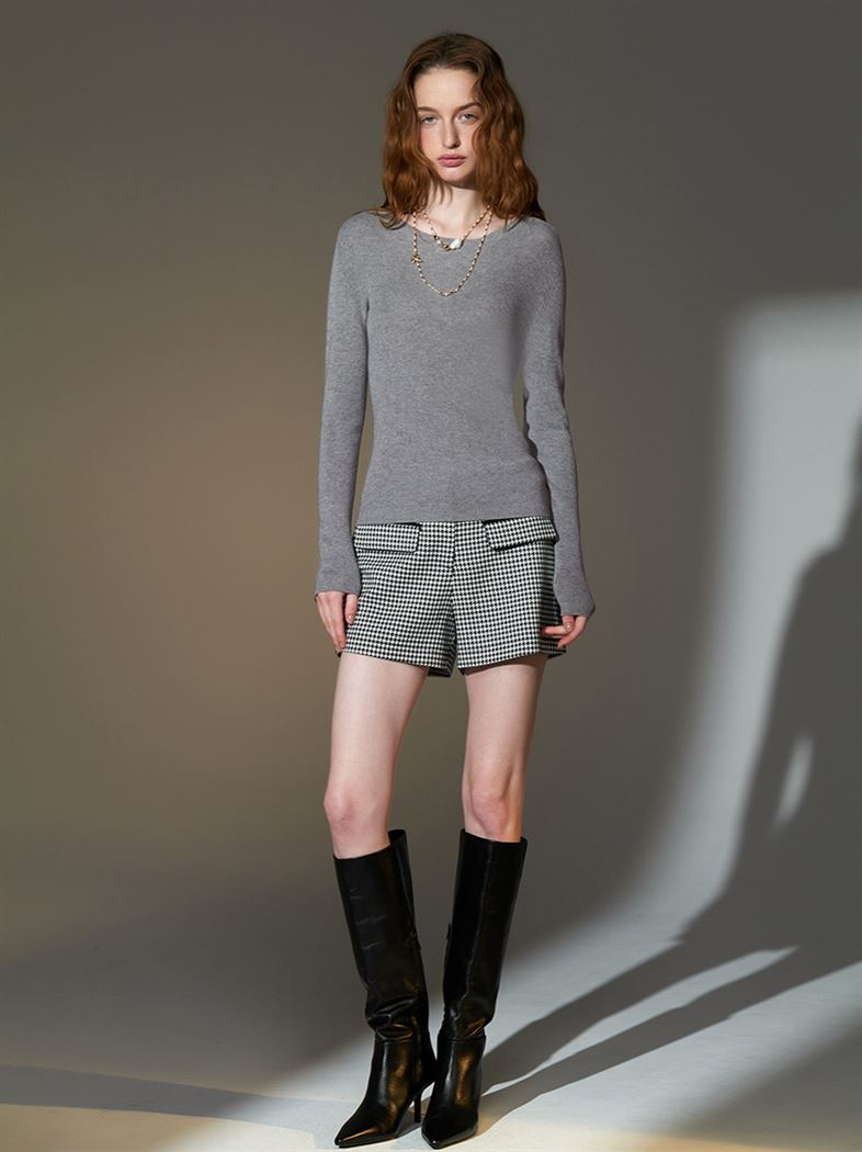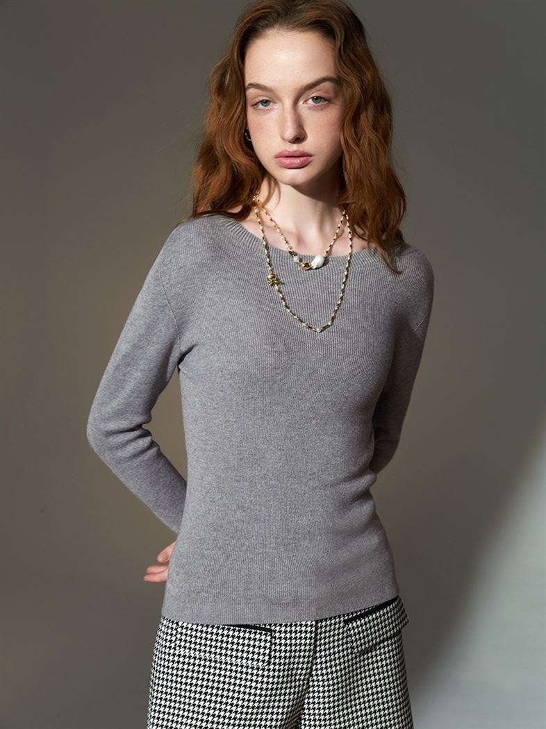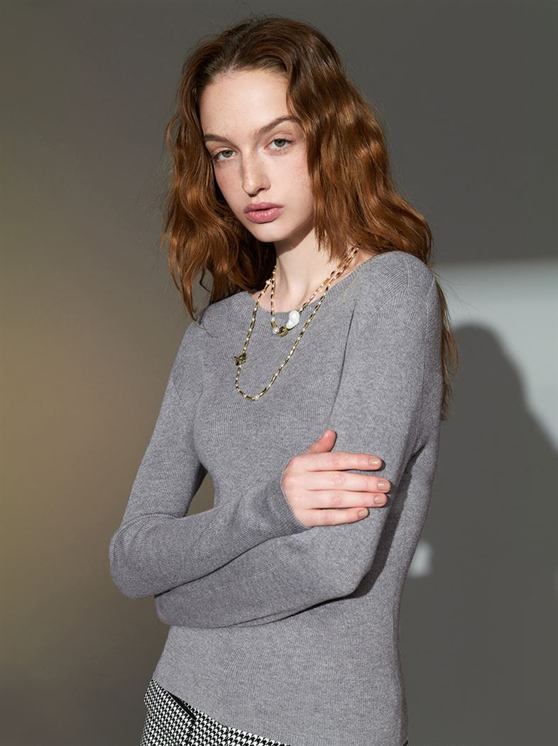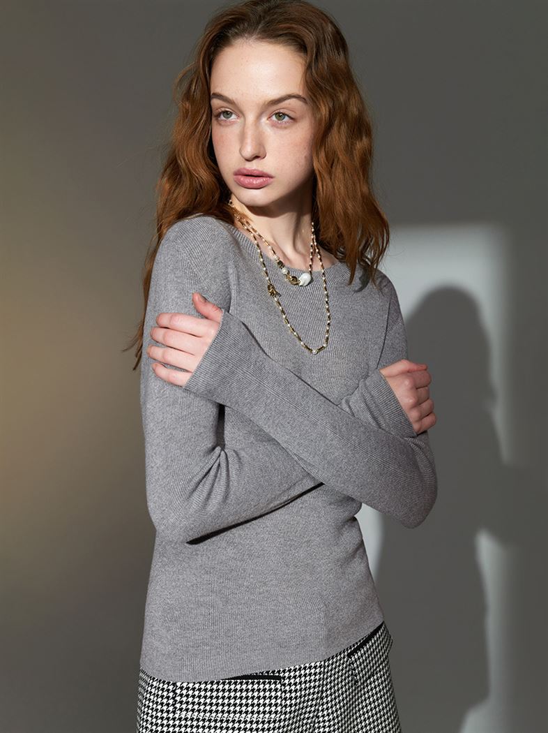 【限時精選】山羊絨混紡柔緻圓領毛衣-灰