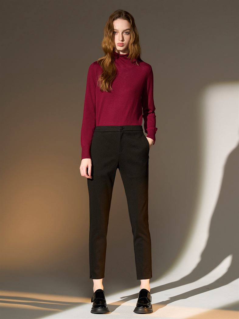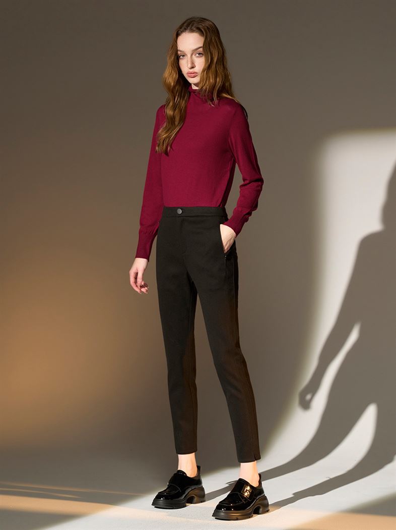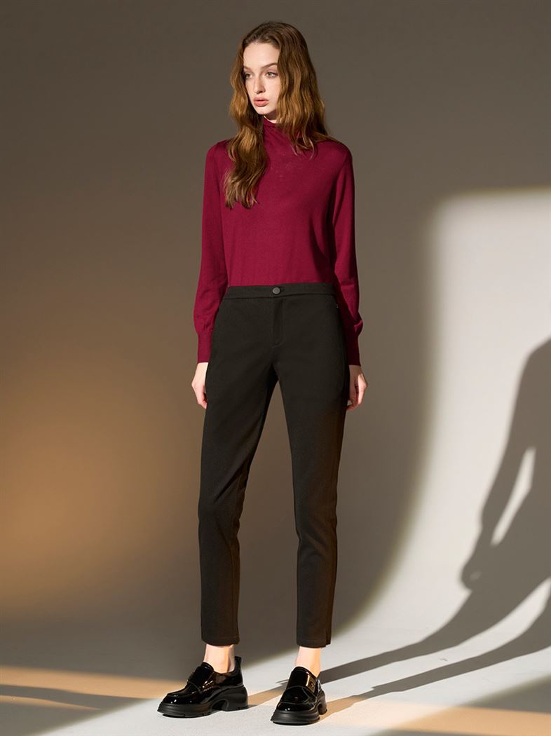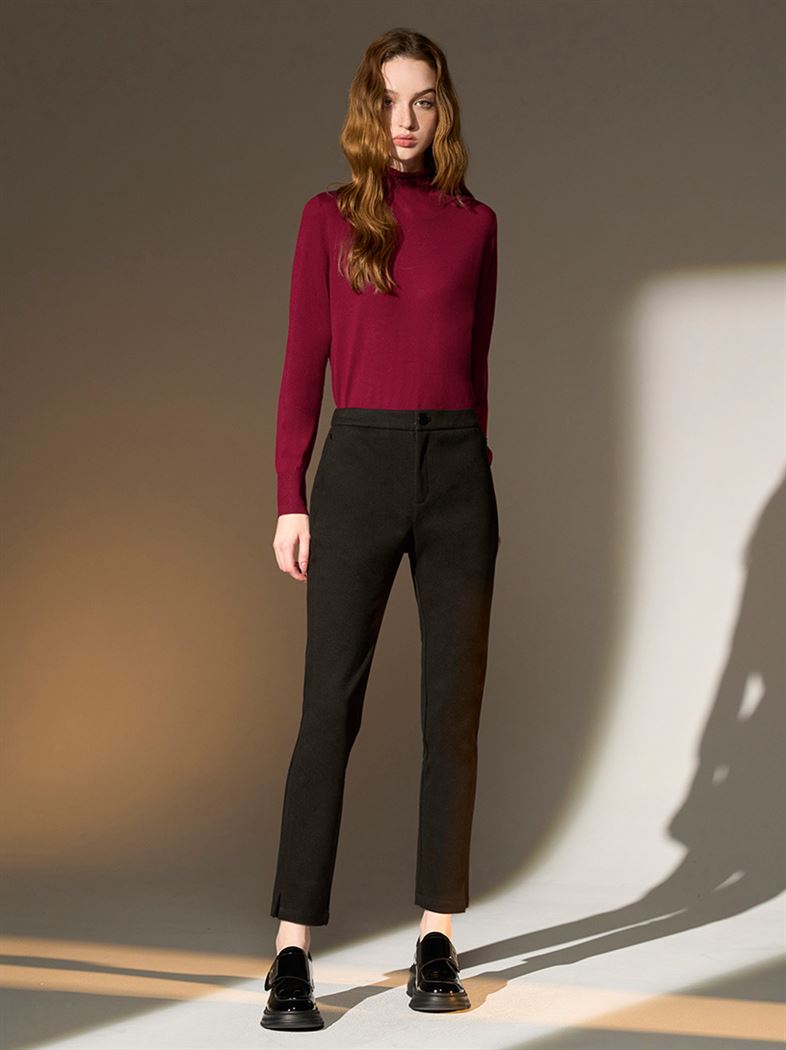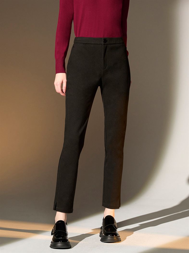 推薦同款卡其色穿搭 磨毛修身九分褲-卡其 請點我