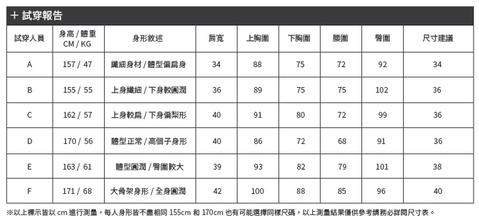 | 臀圍 | 88.9 cm | 94 cm | 99.1 cm | 104.1 cm | 35" | 37" | 39" | 41" |