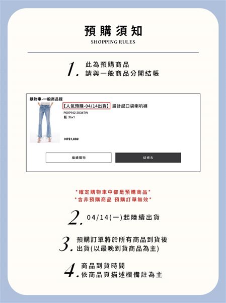 褲口寬 | 45.7 cm | 47.6 cm | 50.2 cm | 51.4 cm | 18" | 18 3⁄4" | 19 3⁄4" | 20 1⁄4" |