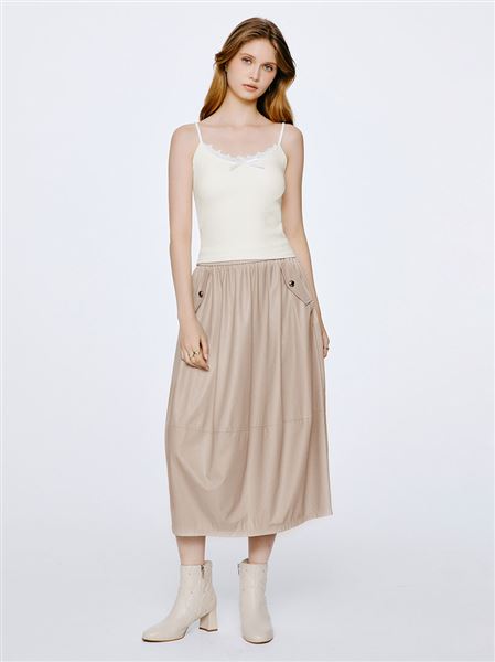 推薦穿搭 蛋白皮革蓬鬆氣球長裙-卡其 請點我