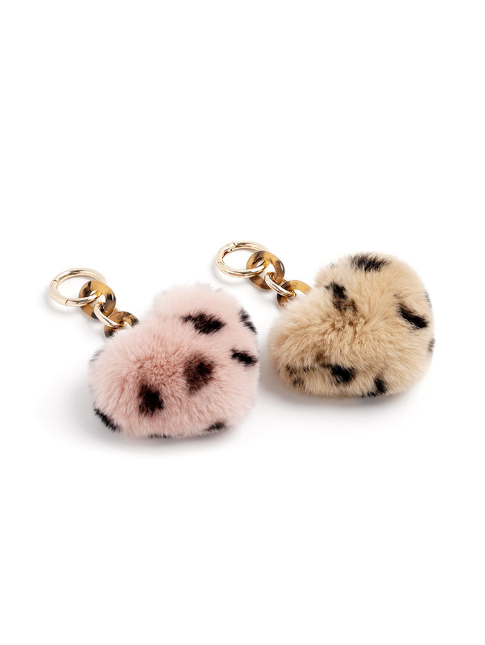 推薦同款卡其色搭配 QQ毛球獺兔毛豹紋吊飾-卡其 | 官網限定