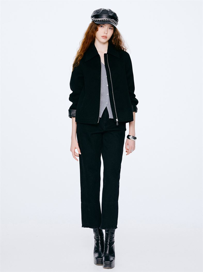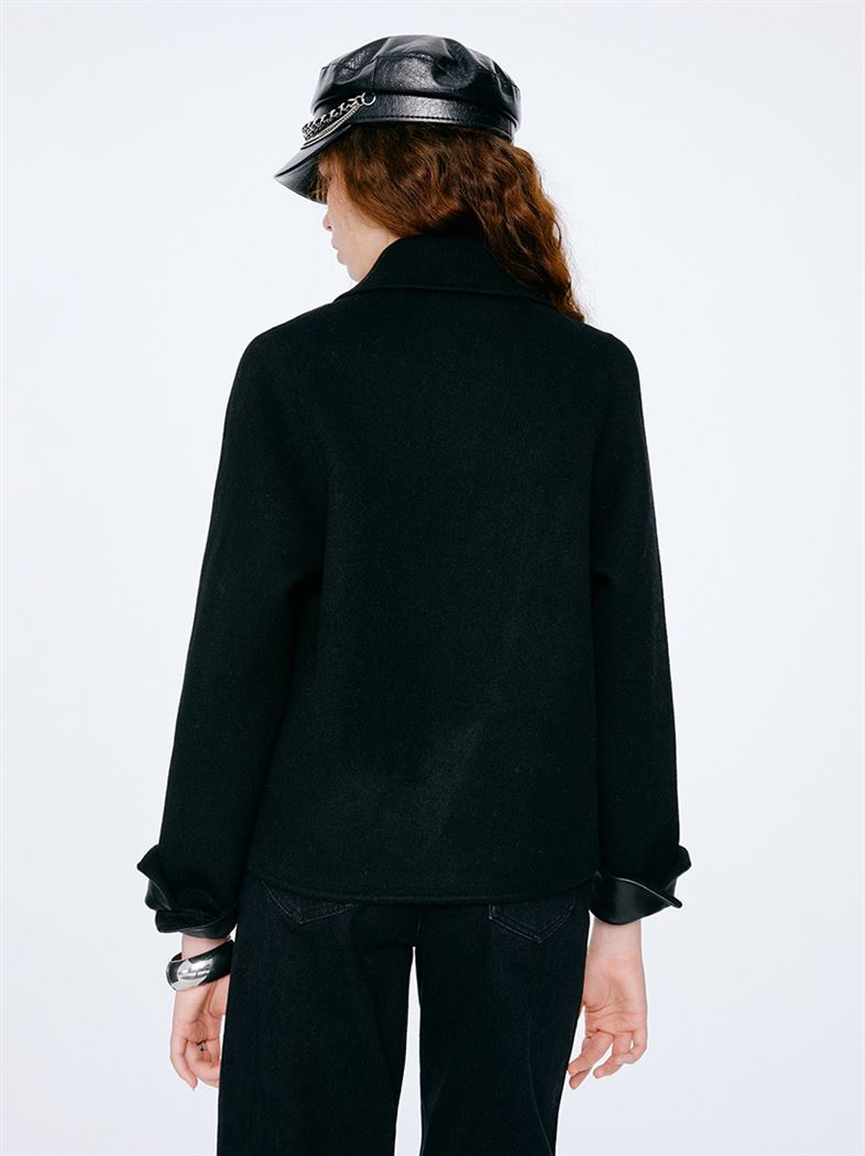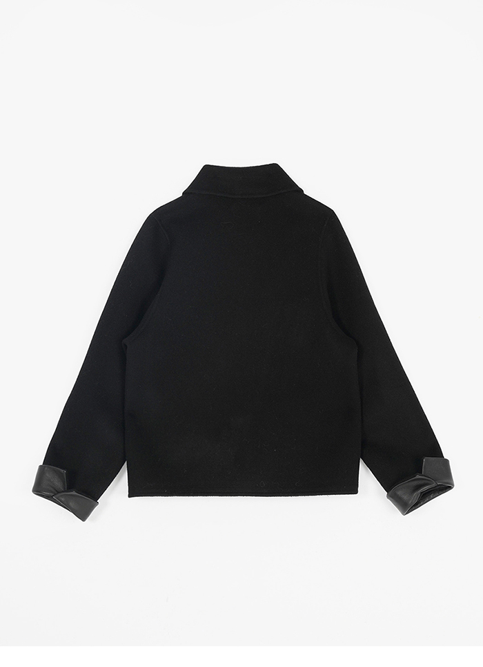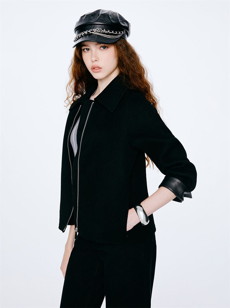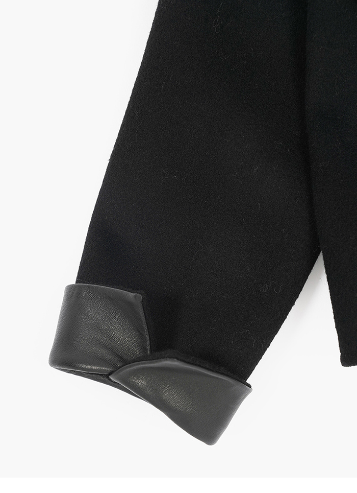 - 兩側袖口拼接綿羊皮革開衩造型,可自由變換風格