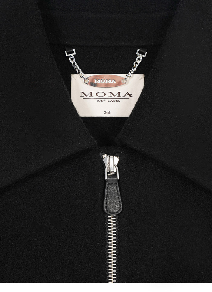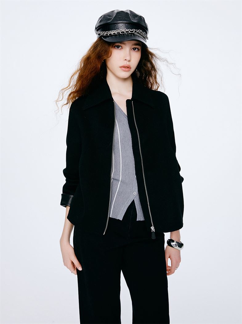 - 西裝領與小皮標拉鍊設計,滑順方便穿脫