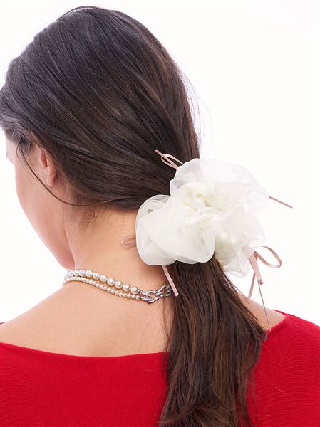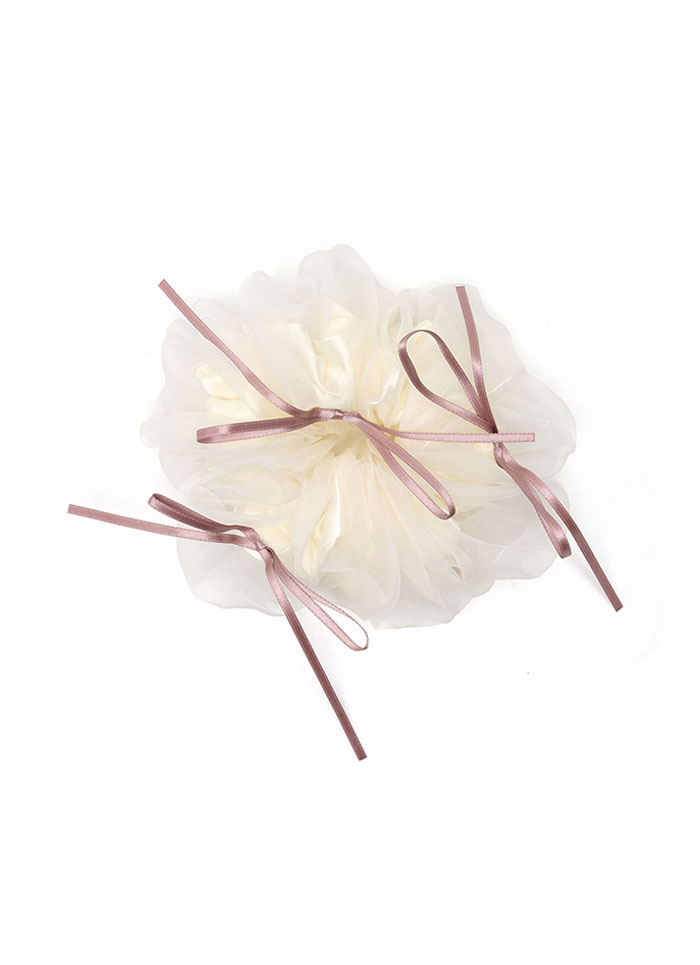 推薦同款卡其色搭配 浪漫風格雙層紗緞帶蝴蝶結髮圈-卡其 請點我