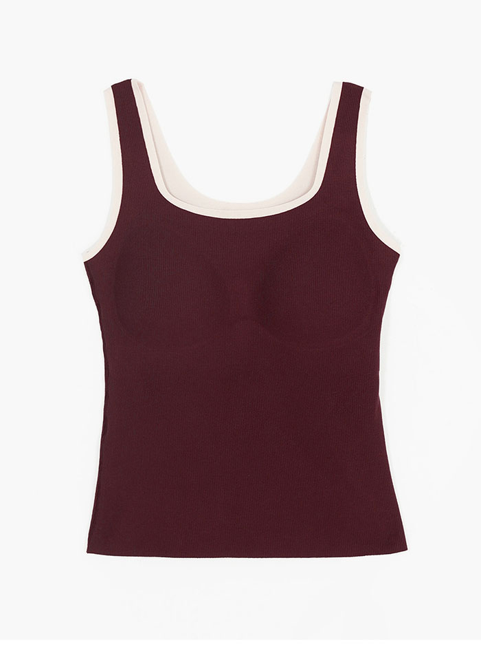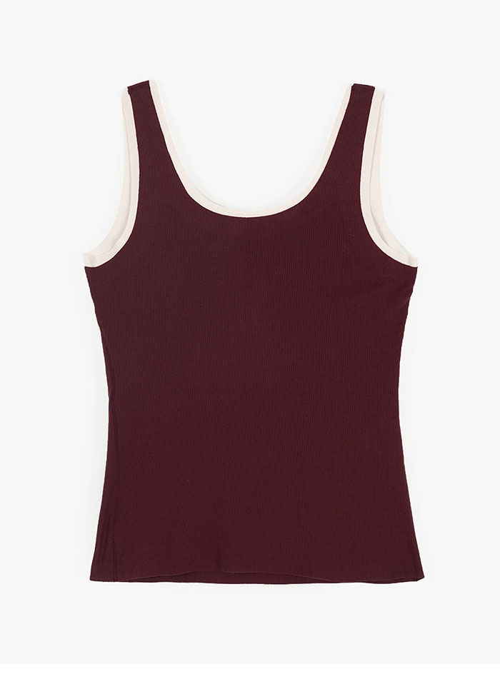 推薦同款暗紅色穿搭 活力滿分彈性撞色背心Bratop-暗紅 請點我