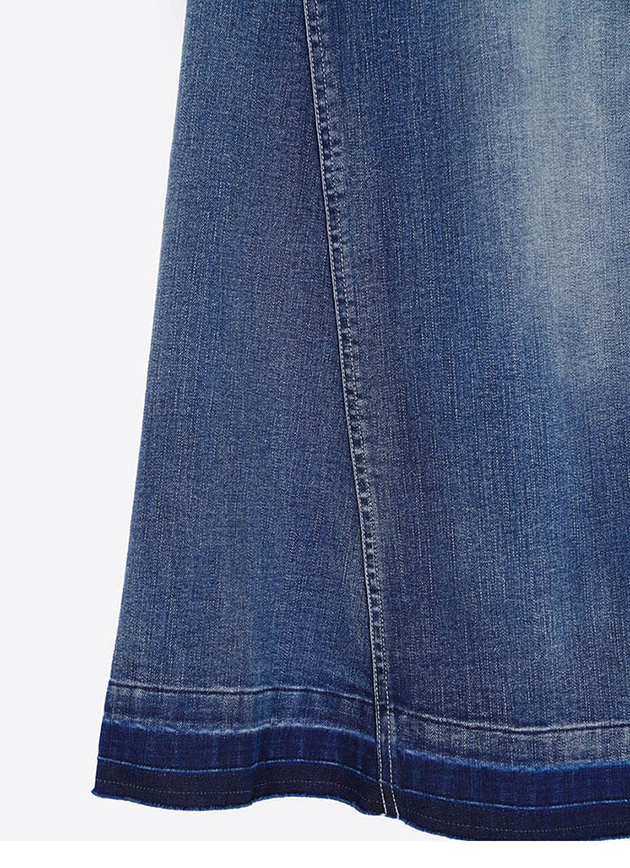 - 裙襬抽鬚毛邊刷色造型,時髦有態度