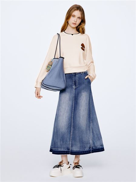 推薦穿搭 潮人態度刷色毛邊抽鬚A字牛仔長裙 請點我