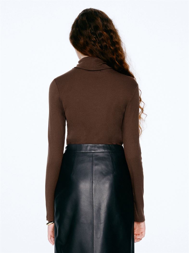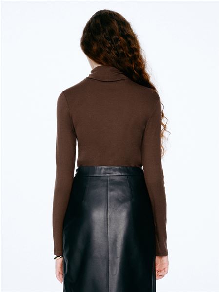 M+ | 萊賽爾高領開衩羊毛上衣-咖啡