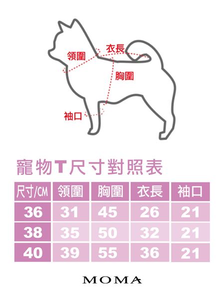 | 衣長 | 26 cm | 31.8 cm | 36.2 cm | 10 1⁄4" | 12 1⁄2" | 14 1⁄4" |