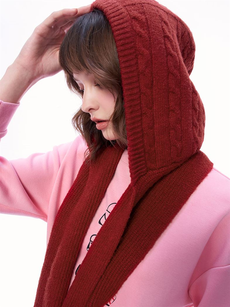 推薦同款米白色穿搭 頭暖暖麻花柔軟連帽造型圍巾-米白 | 官網限定 請點我