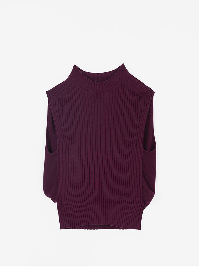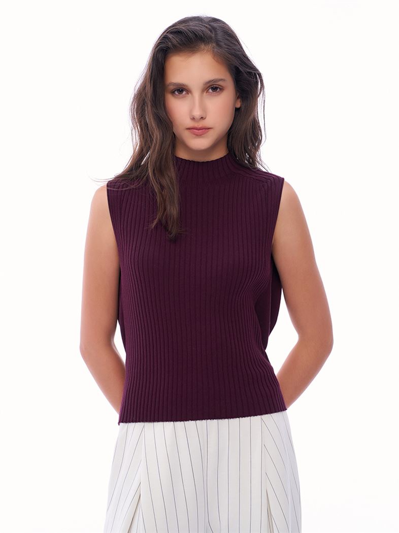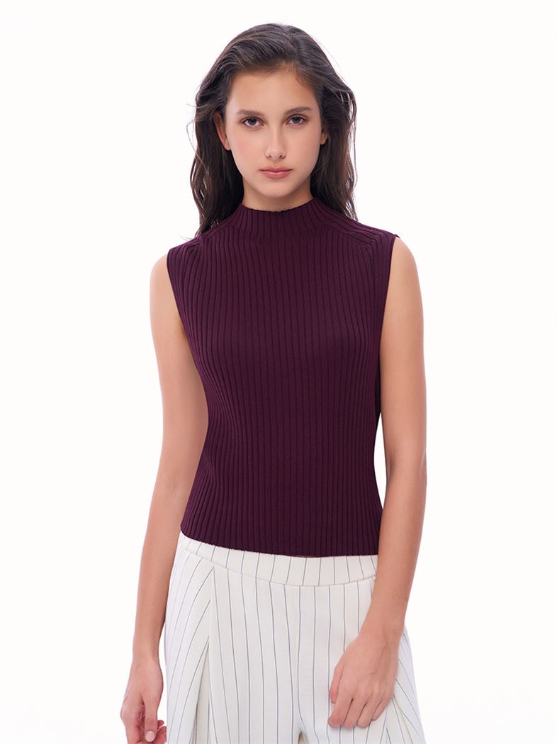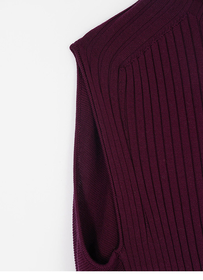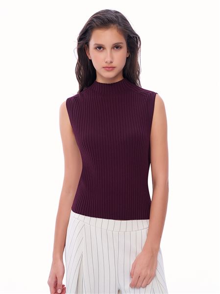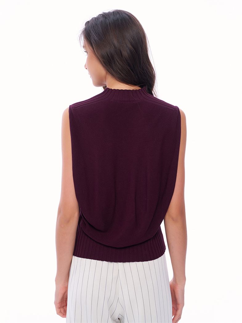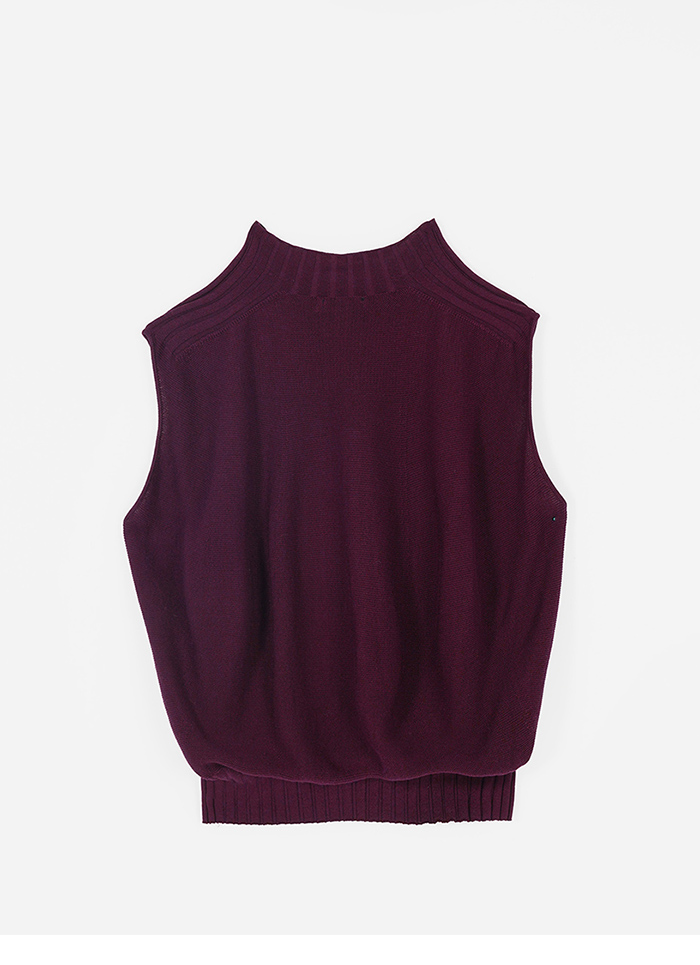 蓬鬆氣球感小立領冰爽絲針織背心-暗紅