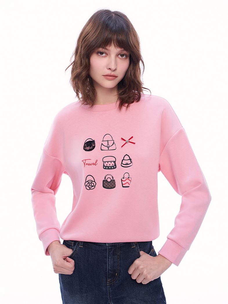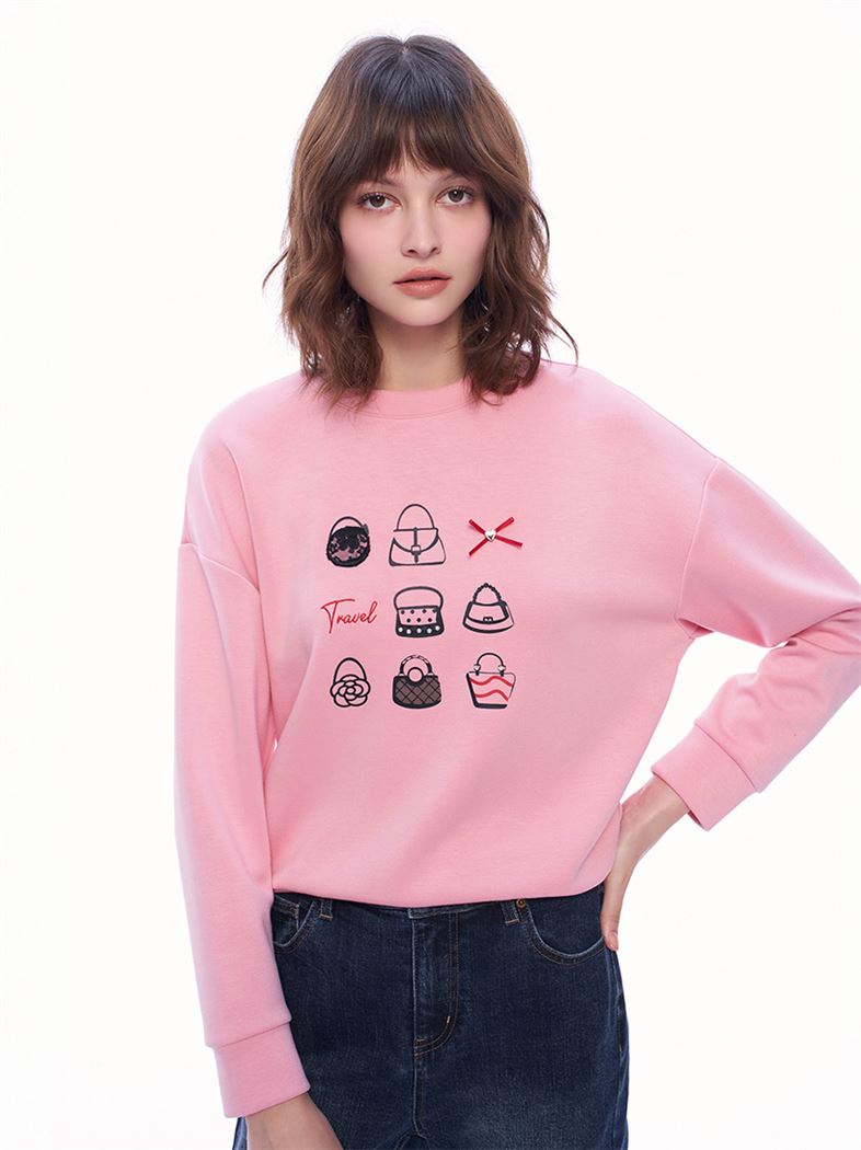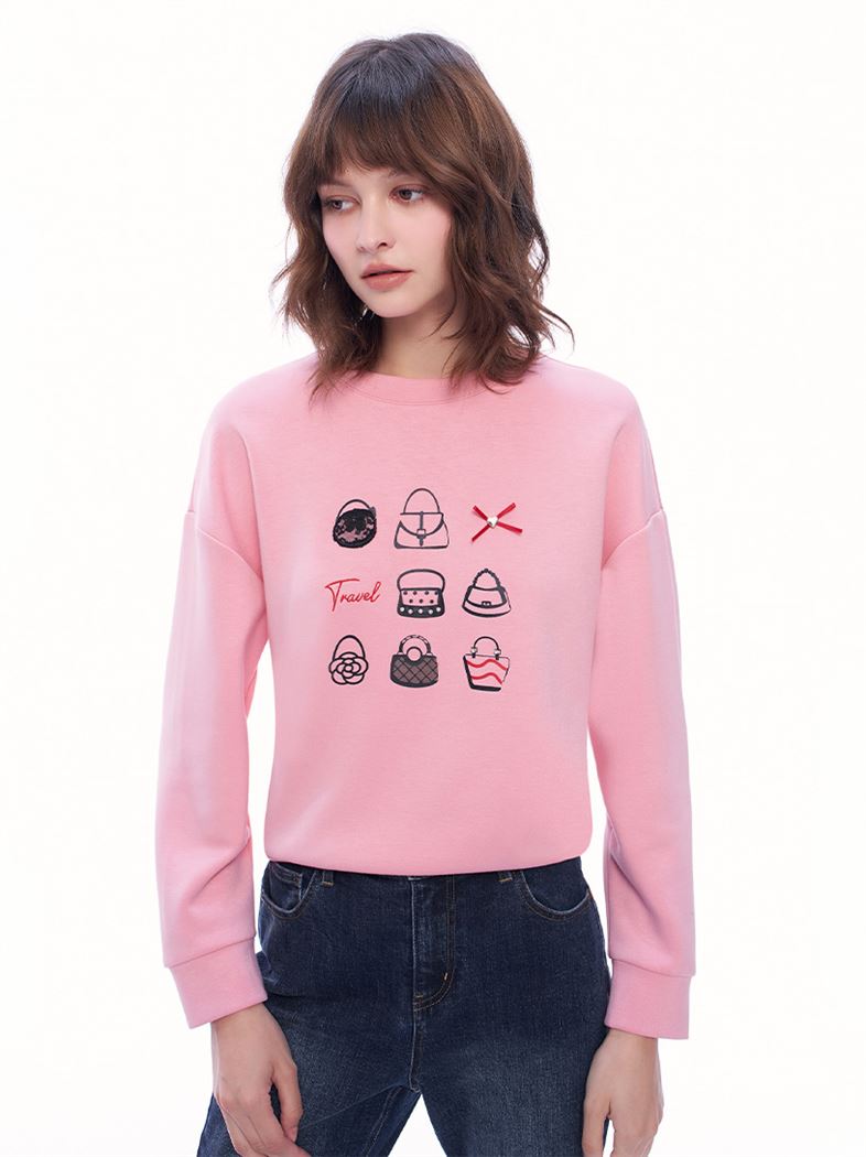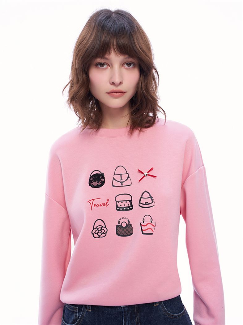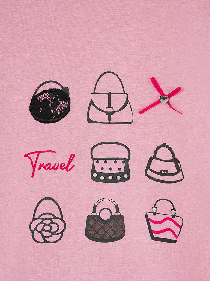 - 前片異材質拼接蕾絲印花與字母刺繡,精緻圖案
