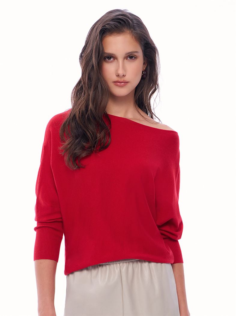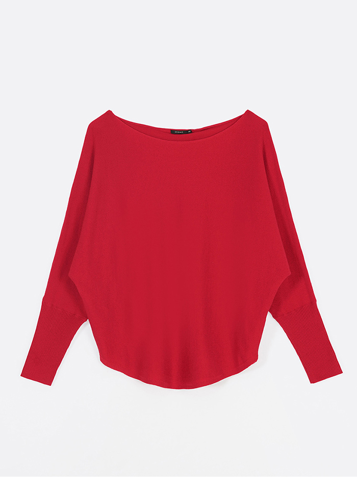- 落肩飛鼠袖與袖口加寬羅紋造型,修飾肉肉手臂