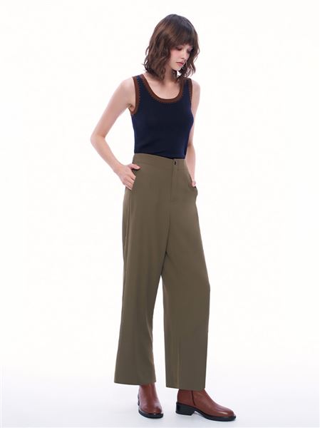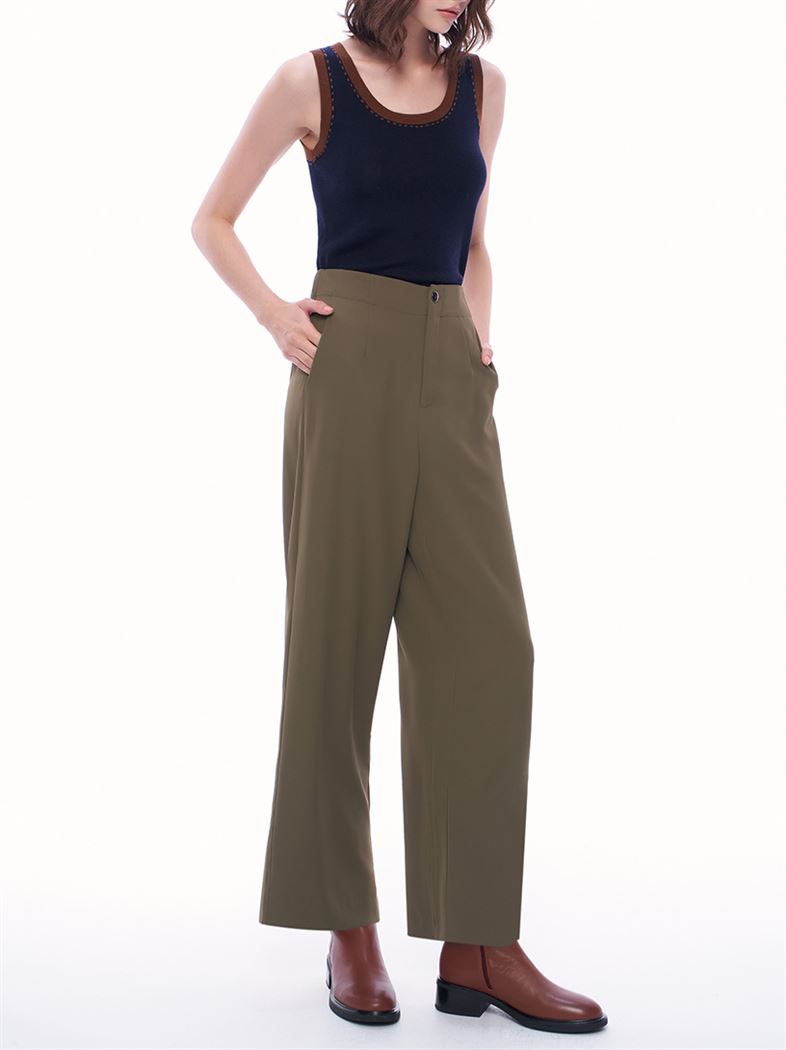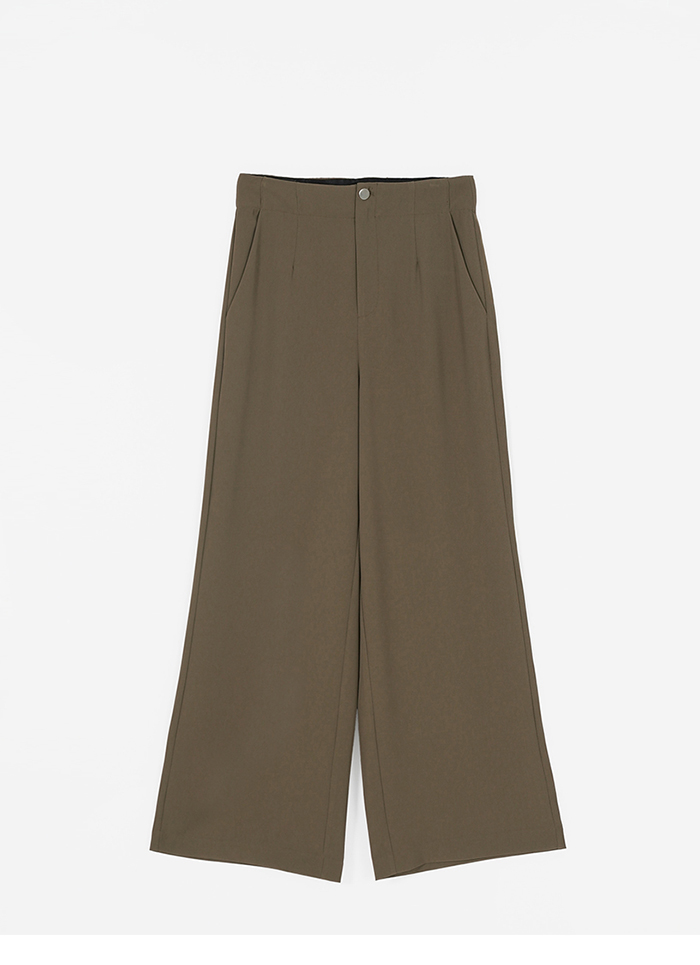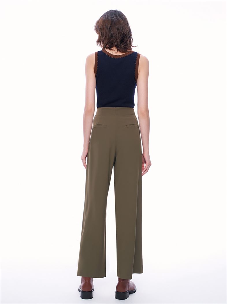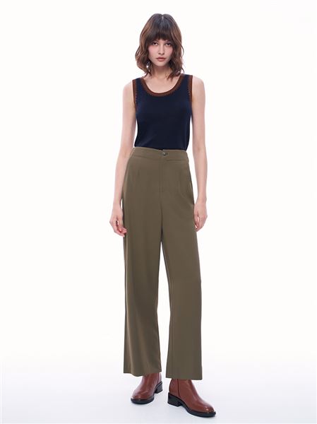 輕飄垂墜度中高腰直筒西裝褲-墨綠
