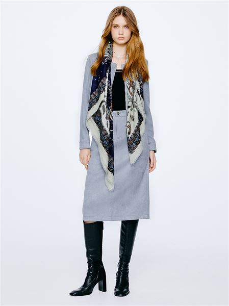 推薦穿搭 時髦絨感後開衩麂皮鉛筆裙-藍 請點我