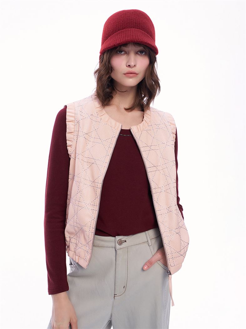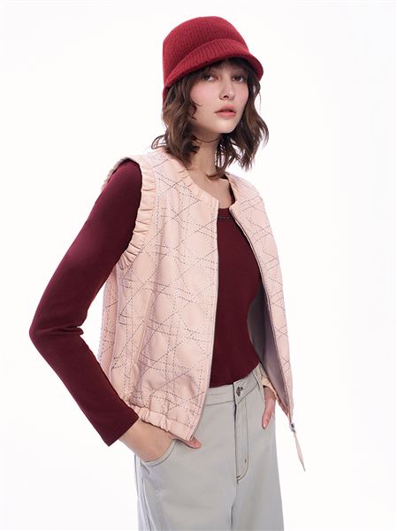 推薦穿搭 精巧串珠點綴修身內刷絨上衣-暗紅 請點我
