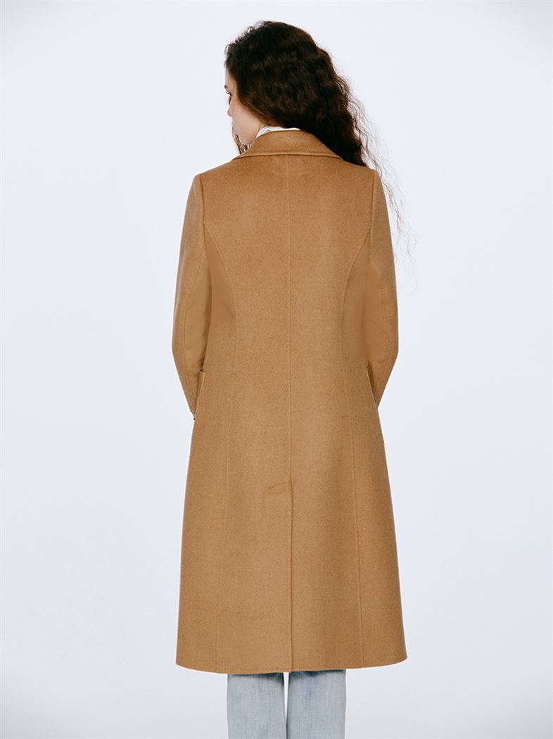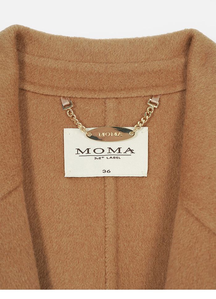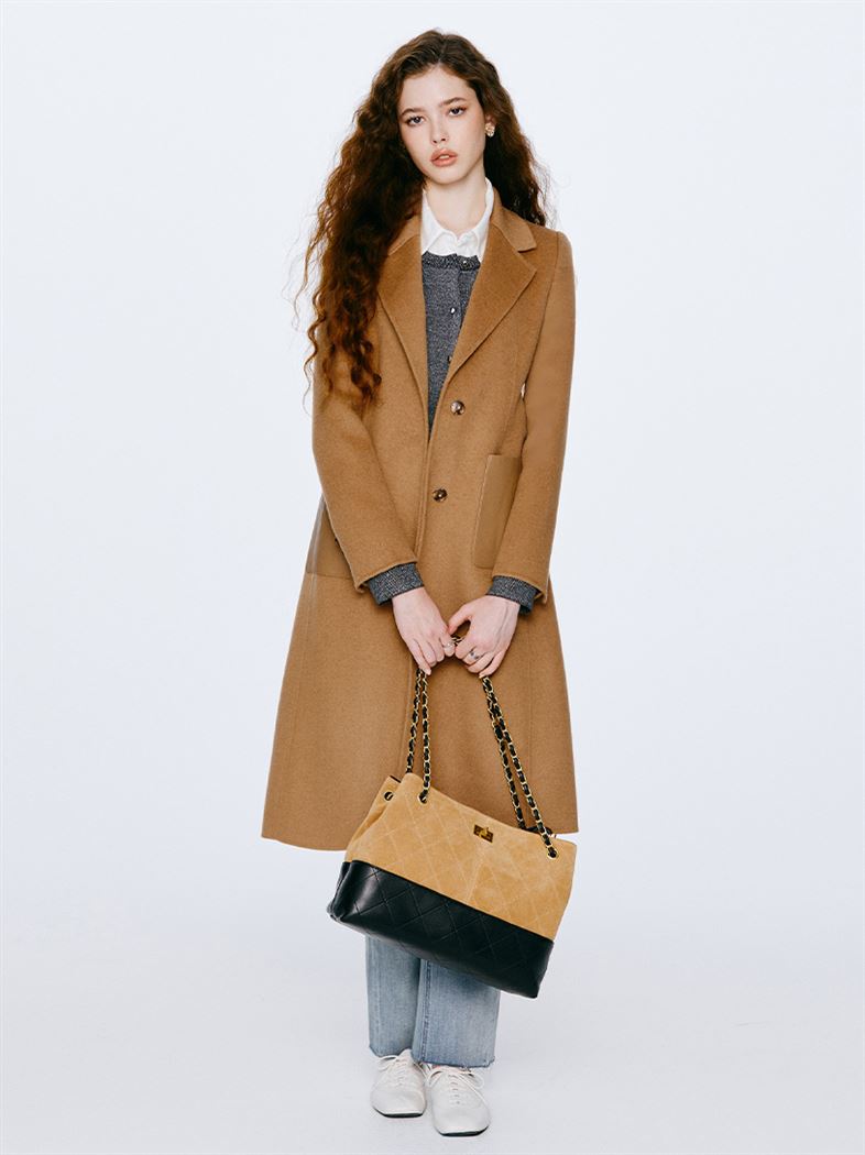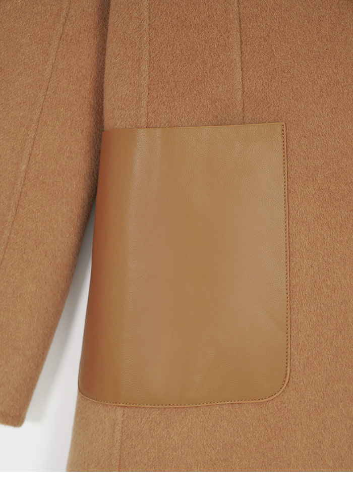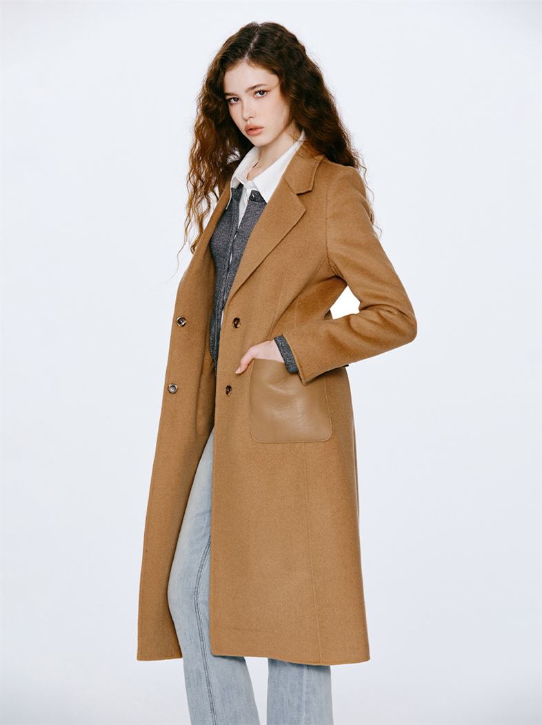 M+ | 韓系街頭拼接真皮羊毛率性大衣-咖啡