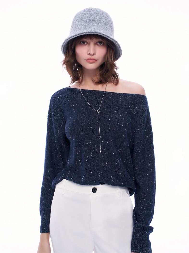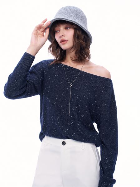 推薦同款灰色穿搭 M+ | 暮金溫暖羊絨一字領針織上衣-灰 請點我