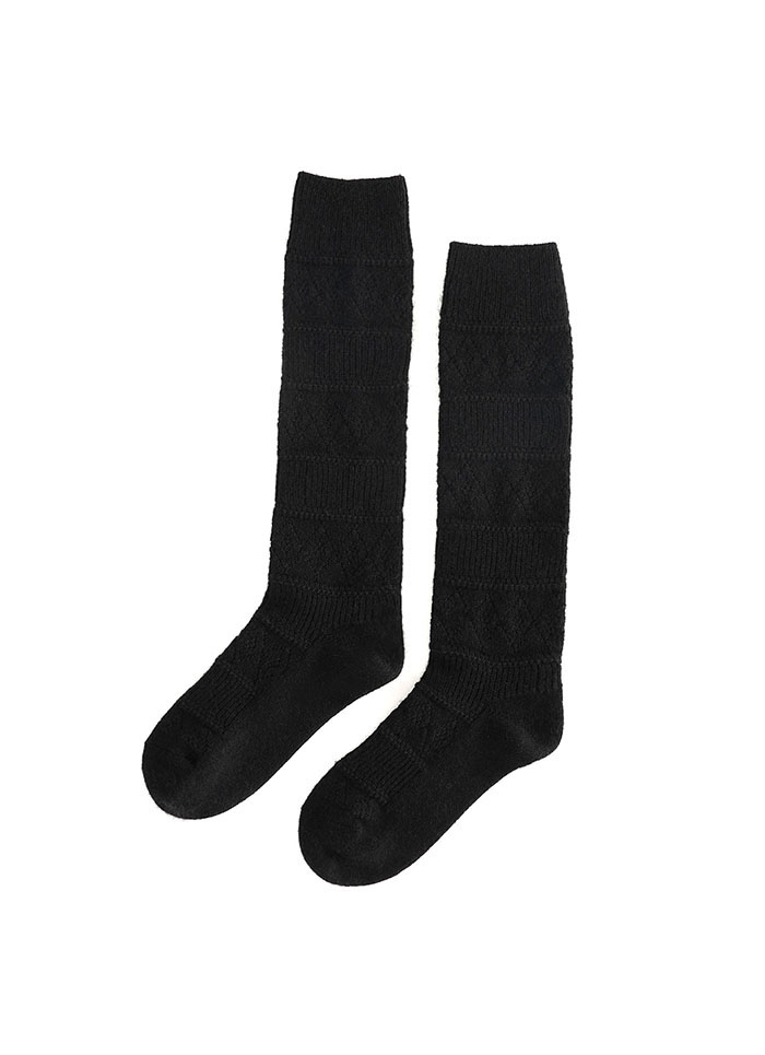 推薦同款米白色穿搭 日系針織菱格紋保暖長襪-米白 請點我