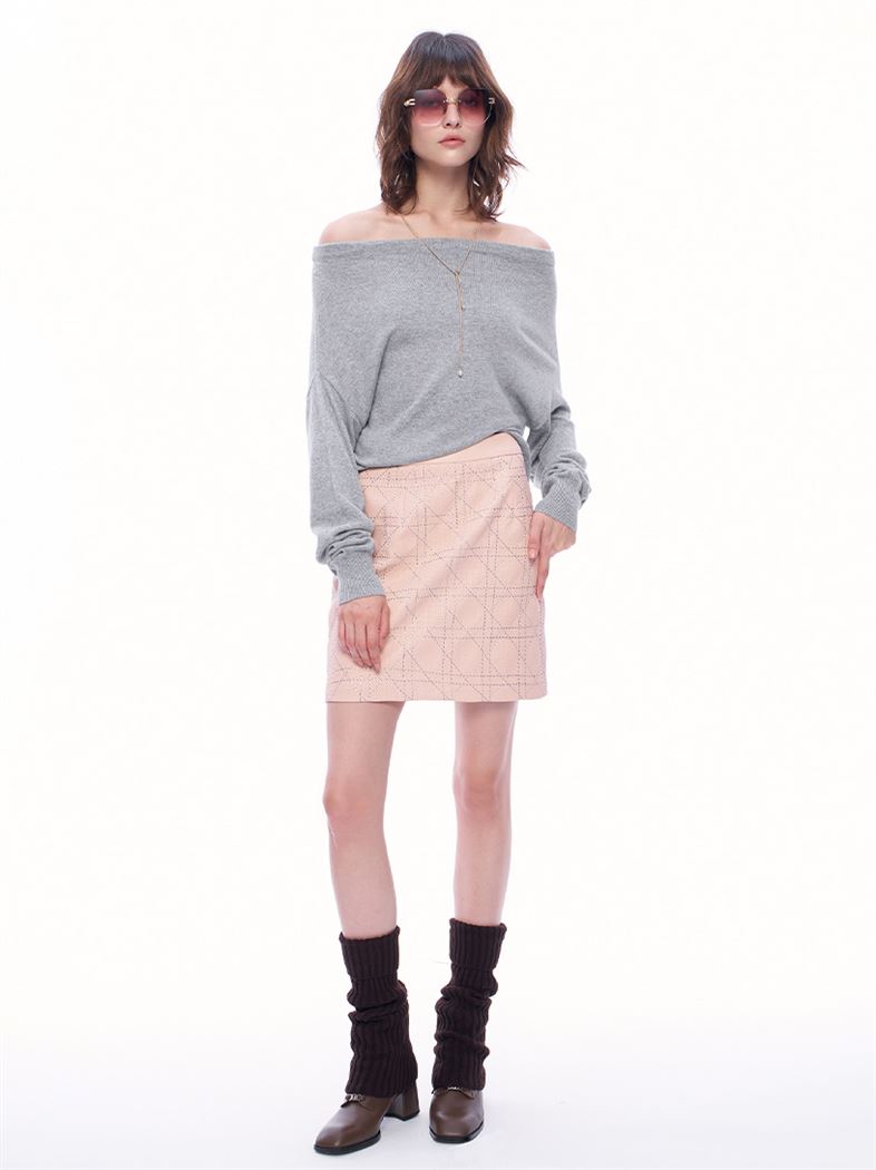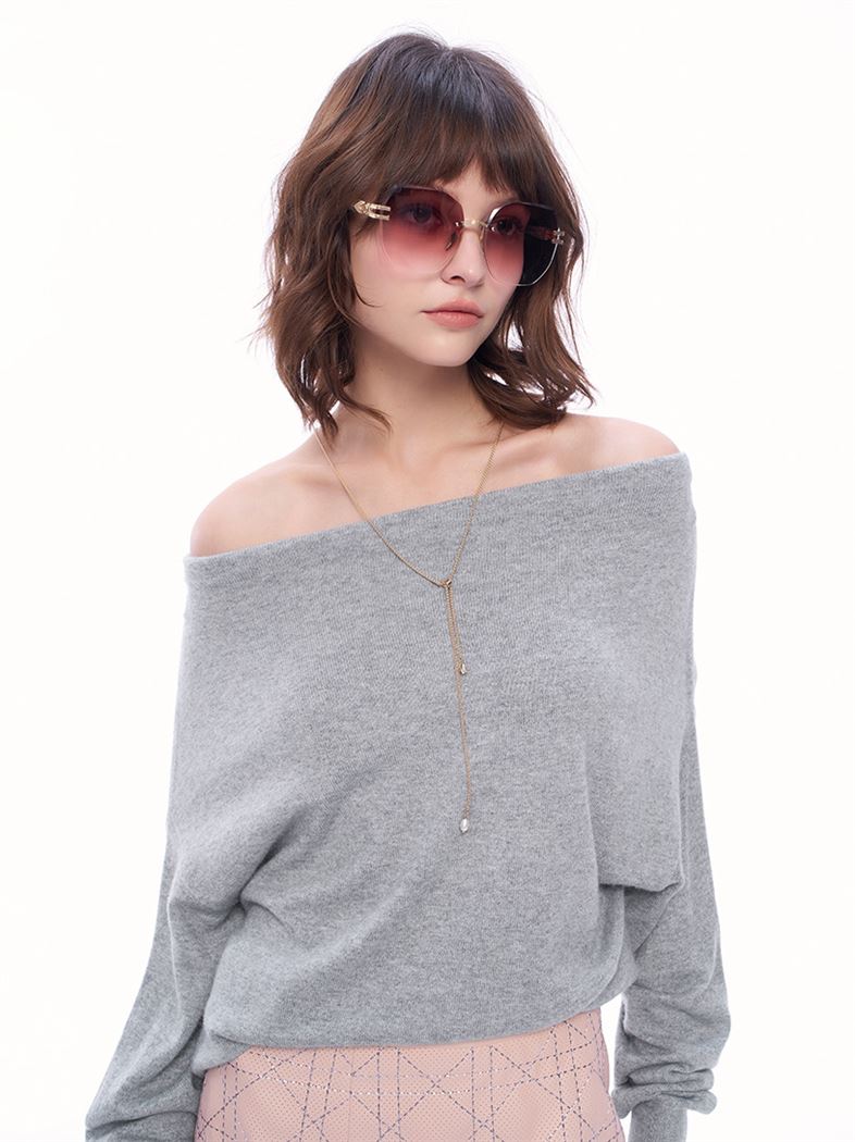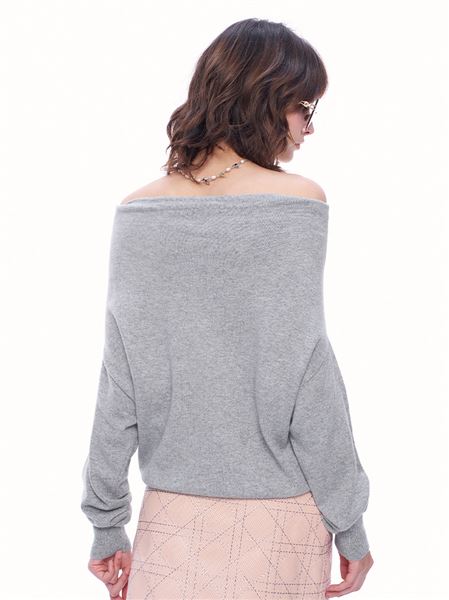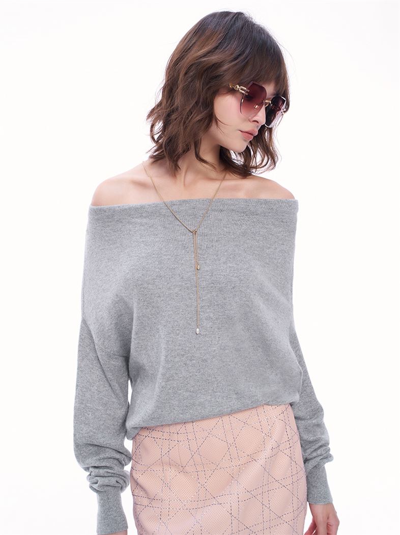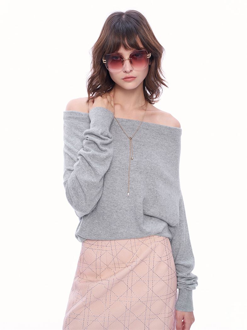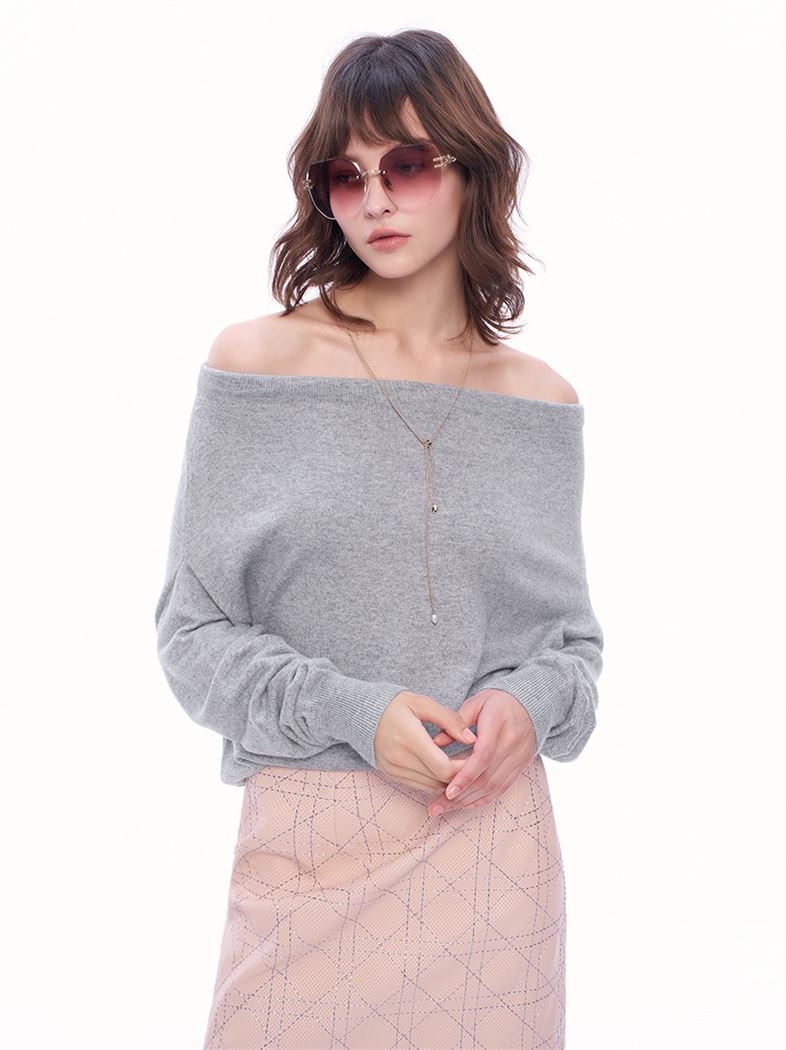 推薦同款暗紅穿搭 隨心所欲兔絨羊毛針織一字領上衣-暗紅 請點我
