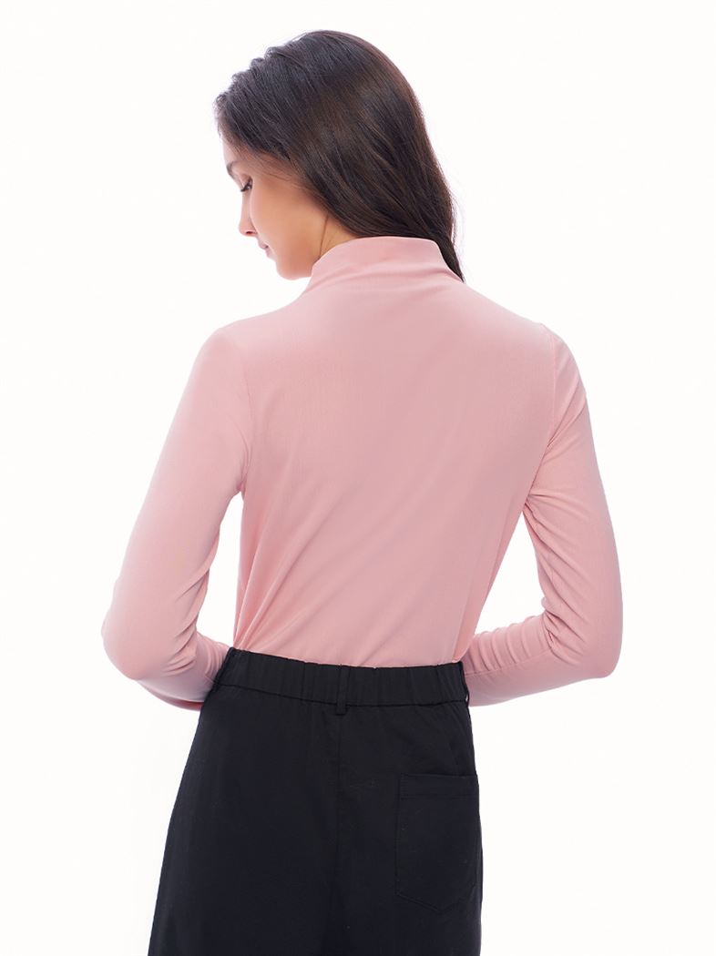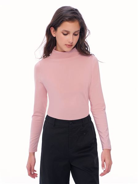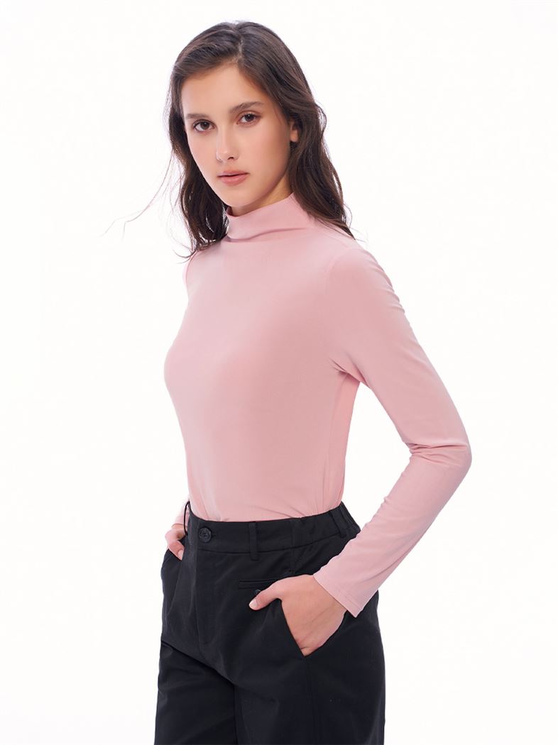 推薦同款淺藍穿搭 基礎款小立領內刷絨六角網布上衣-淺藍 請點我