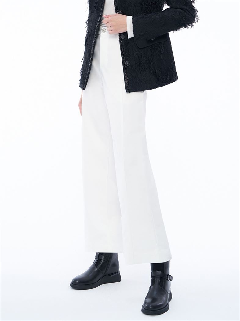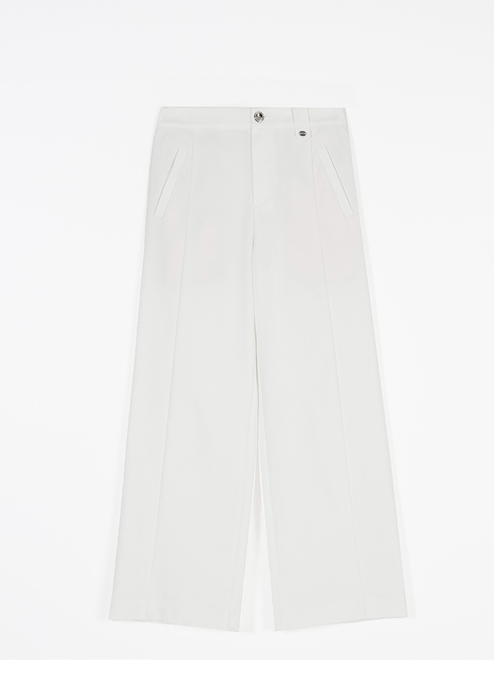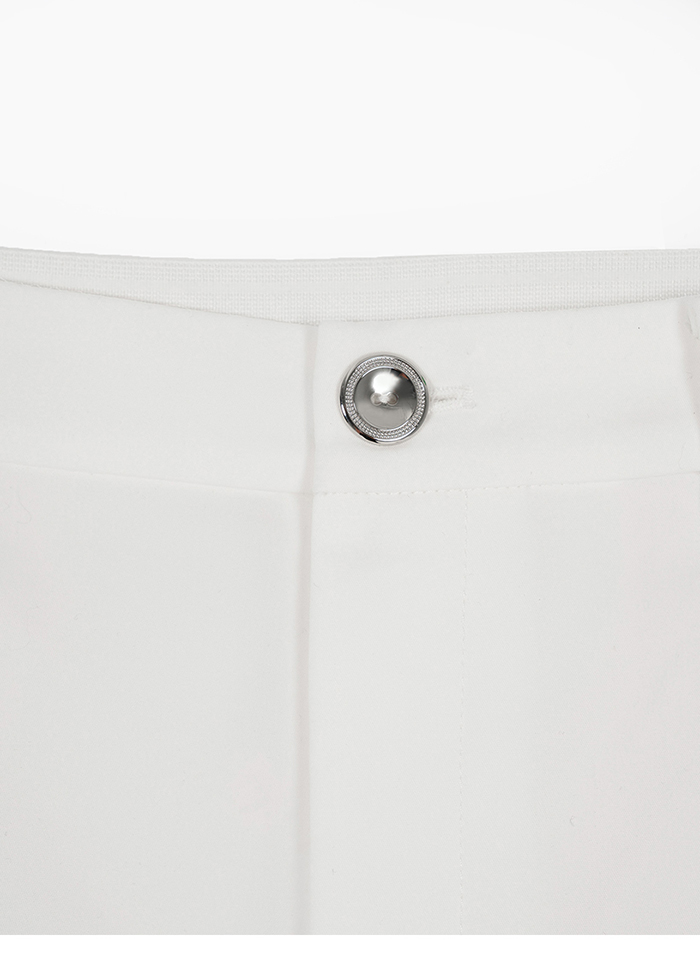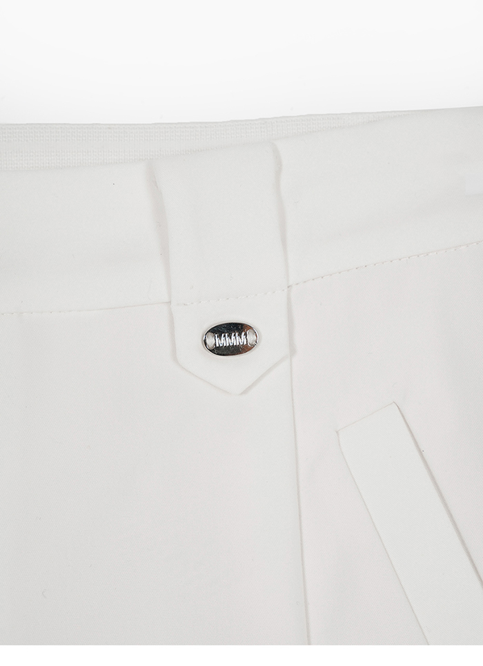 修長M字小銀標錦棉A字直筒褲-白