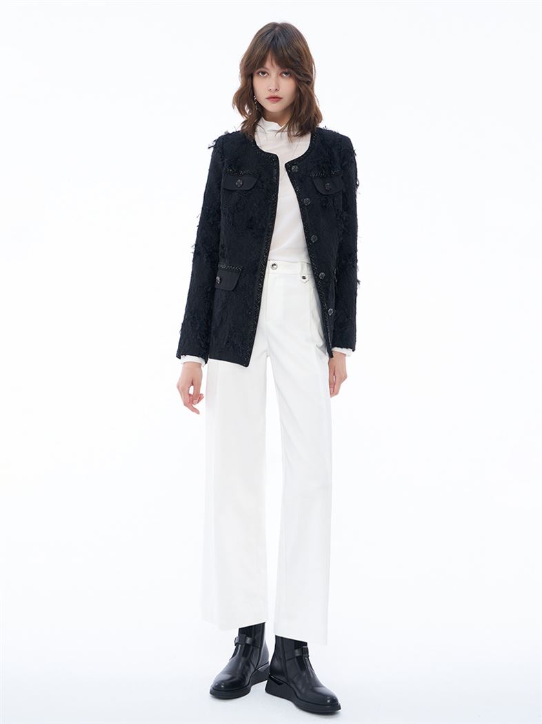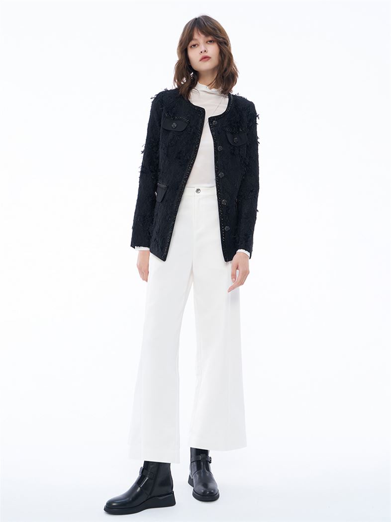 - 前片有雙縫線與後片有雙打褶,修身拉長腿部線條