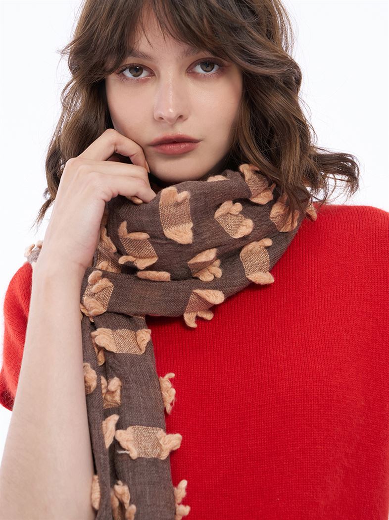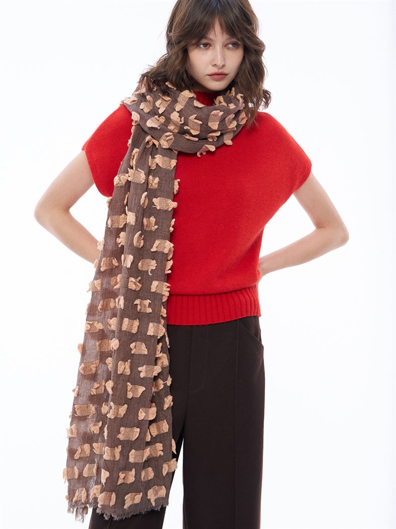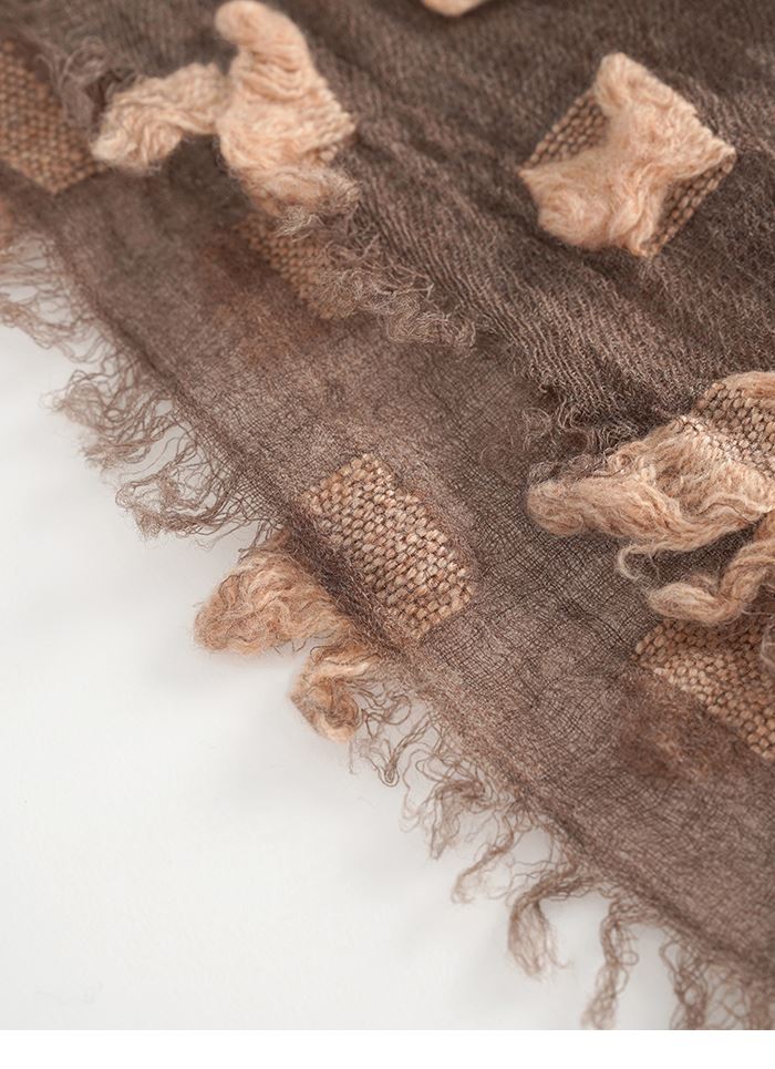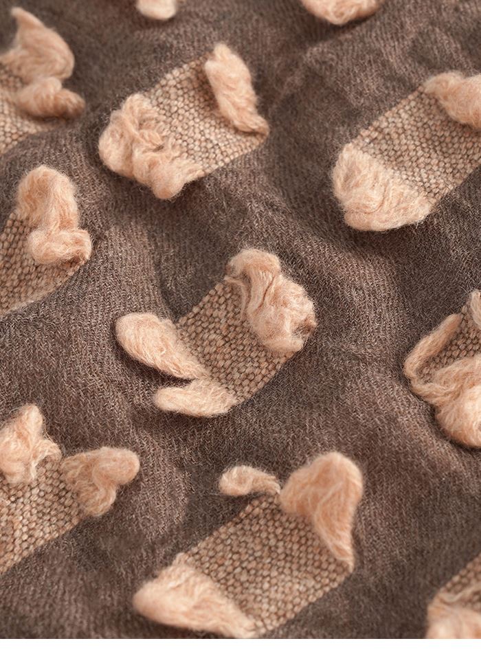推薦同款灰色穿搭 俏皮撞色繽紛剪花羊絨圍巾-淺灰 請點我