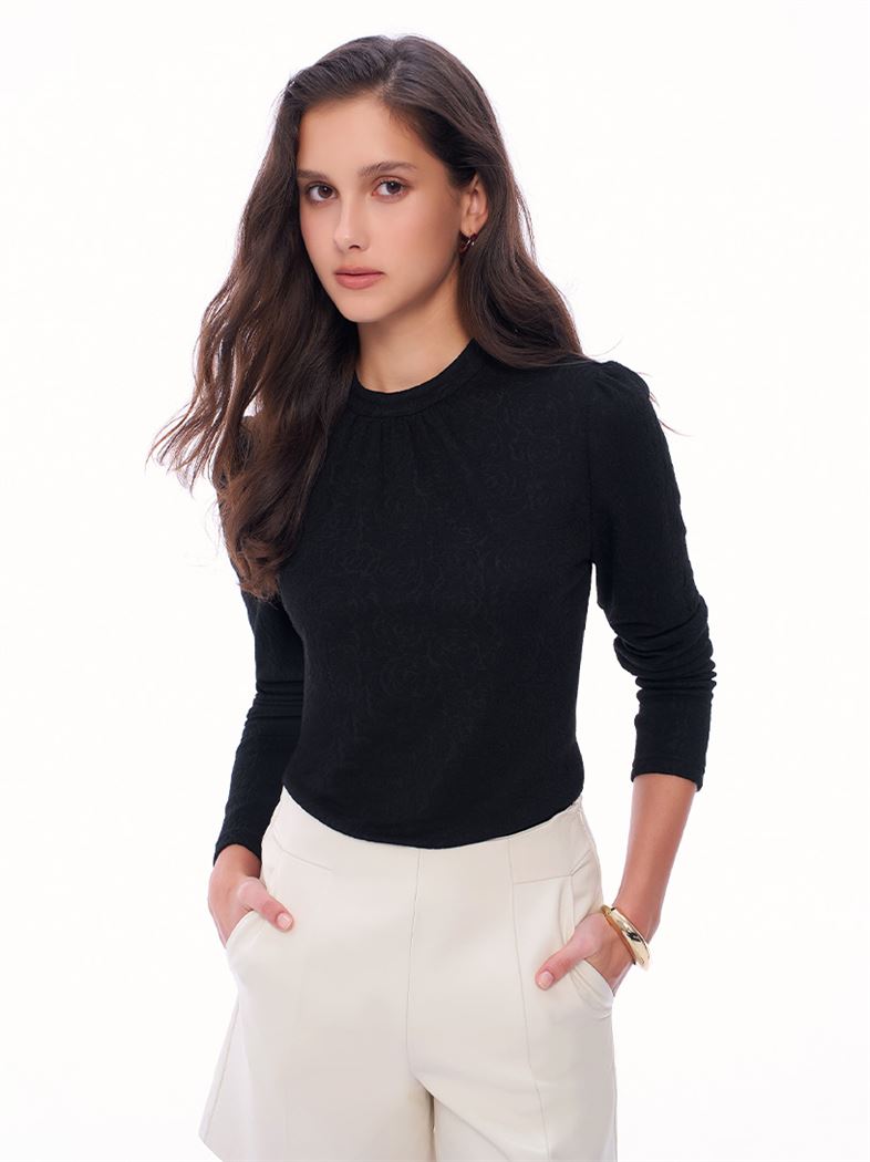 - 肩部褶皺與蓬袖造型,修飾肉肉手臂