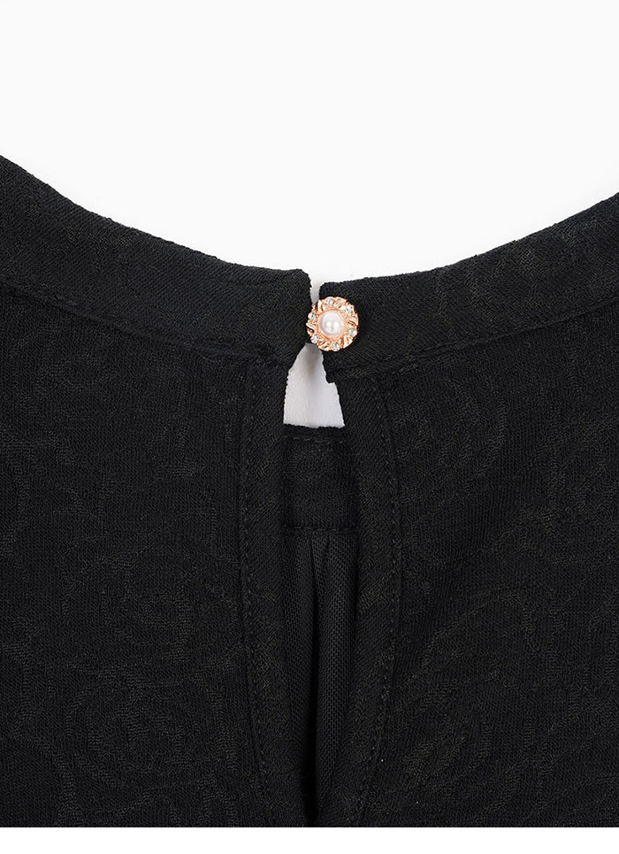 - 圓領與後有閃鑽珍珠開釦設計,方便穿脫