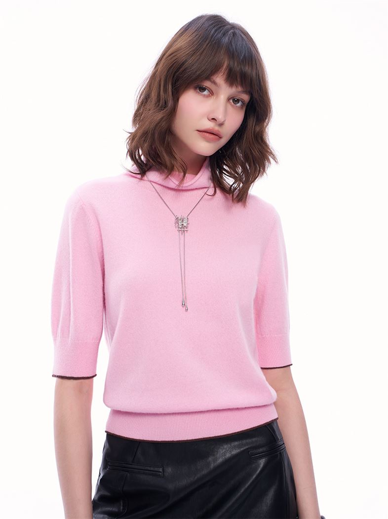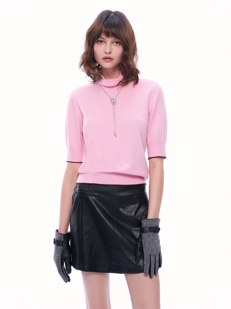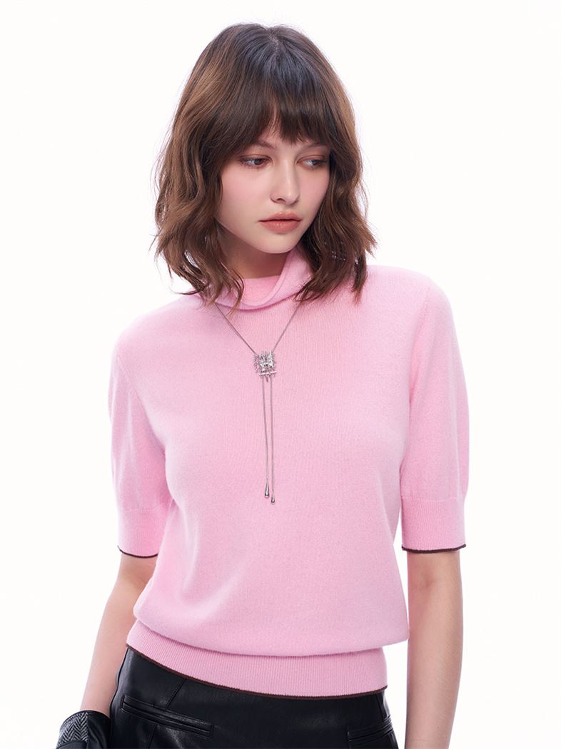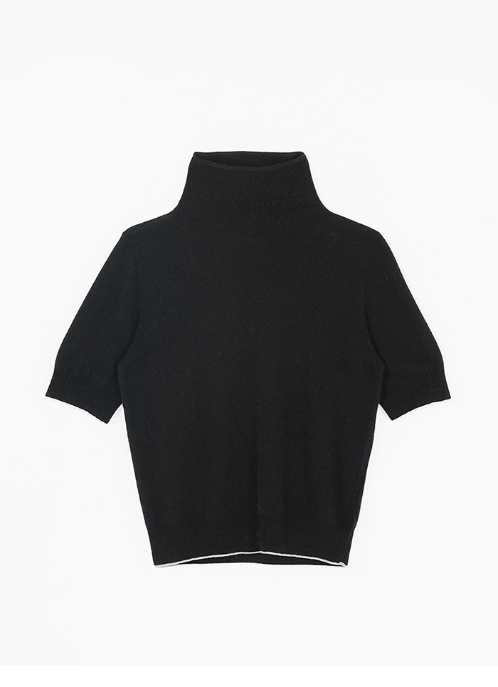 推薦同款黑色穿搭 M+ | 高領五分袖100%羊絨針織上衣-黑 請點我