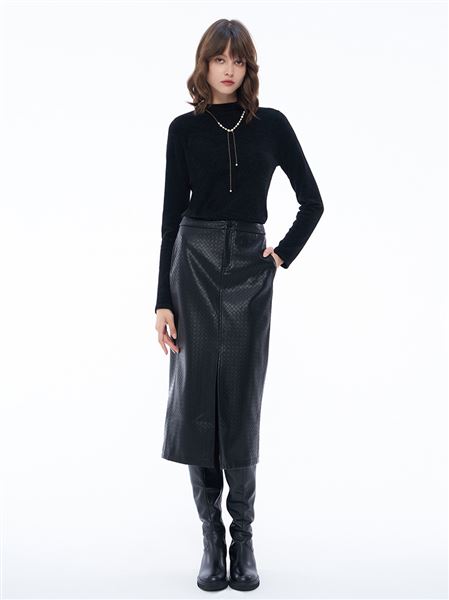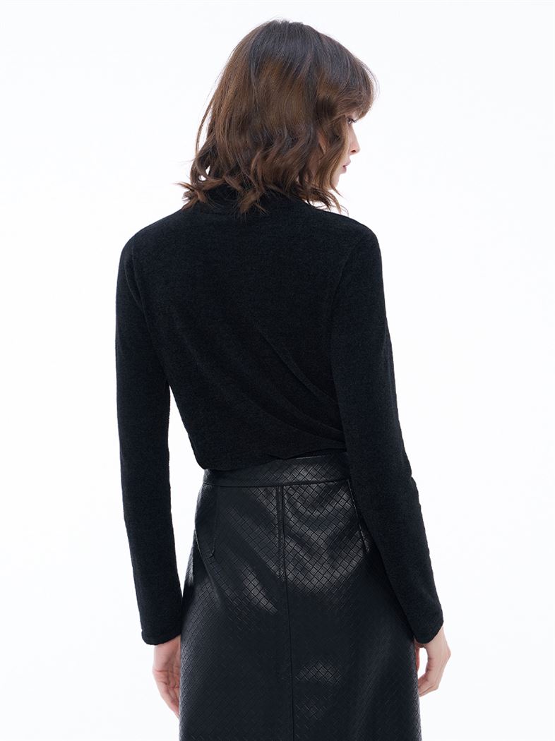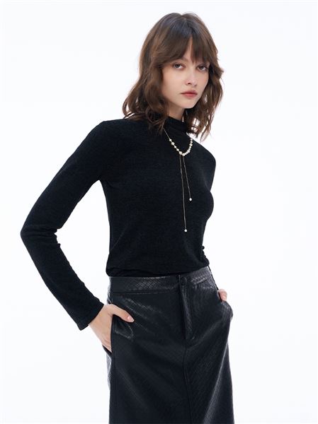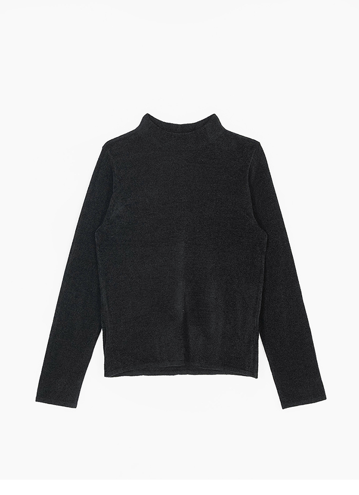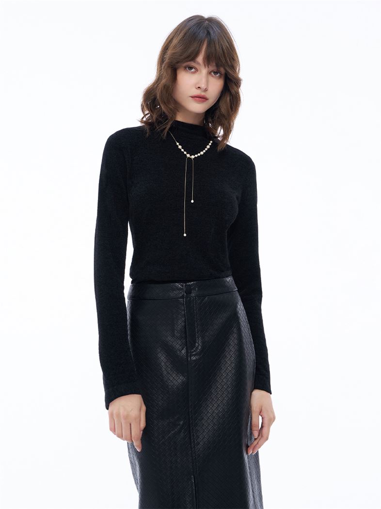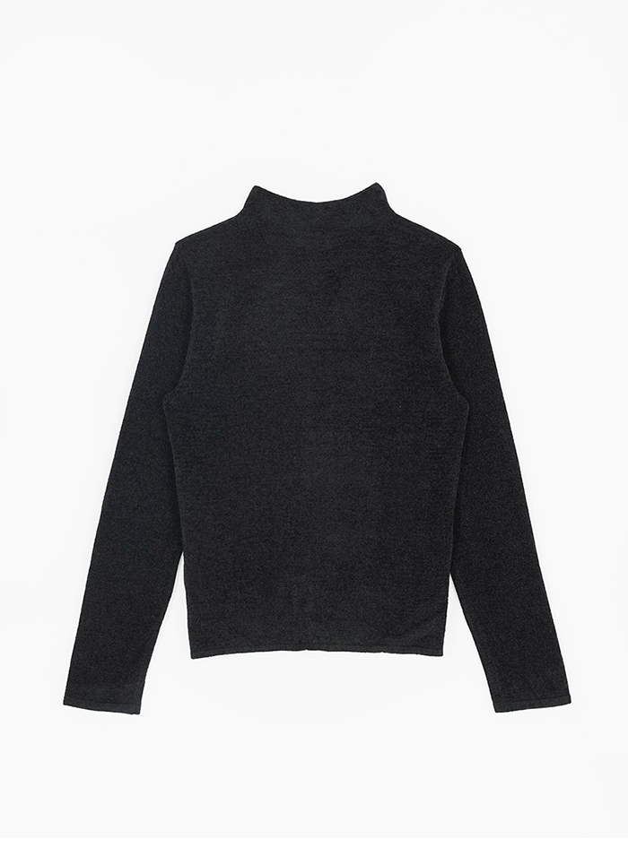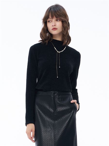 M+ | 百搭親膚天鵝絨火山領針織上衣-黑