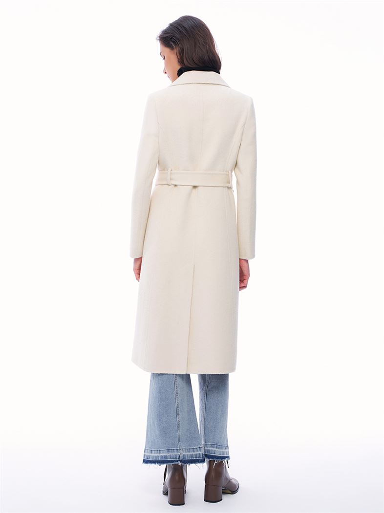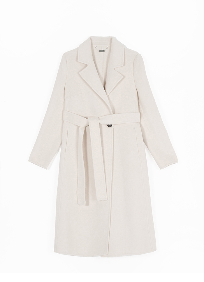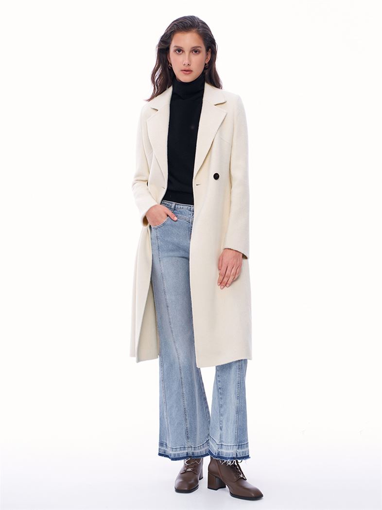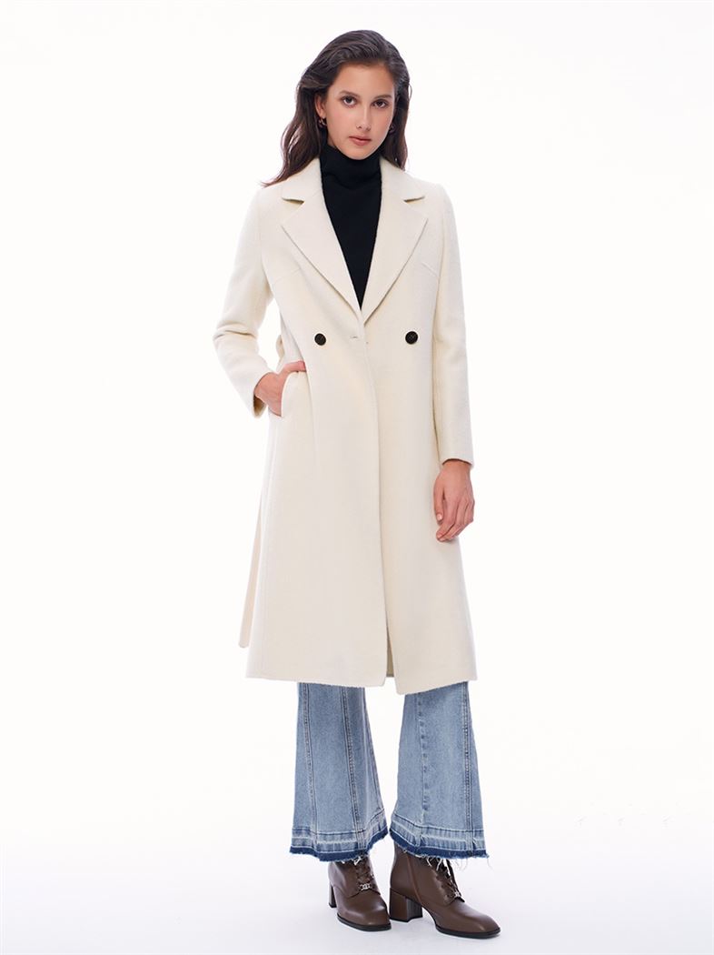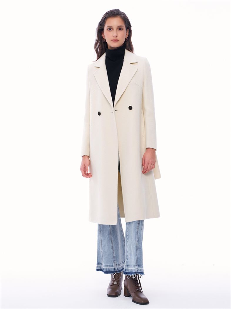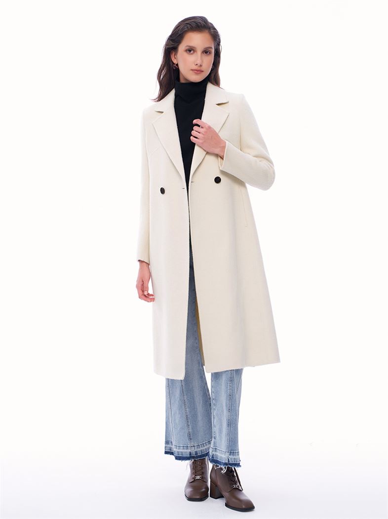M+ | 簡約大氣雙排釦雙面毛呢大衣-米白