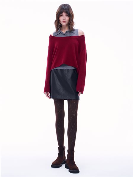 推薦穿搭 顯瘦菱格走線皮革短裙-黑 請點我