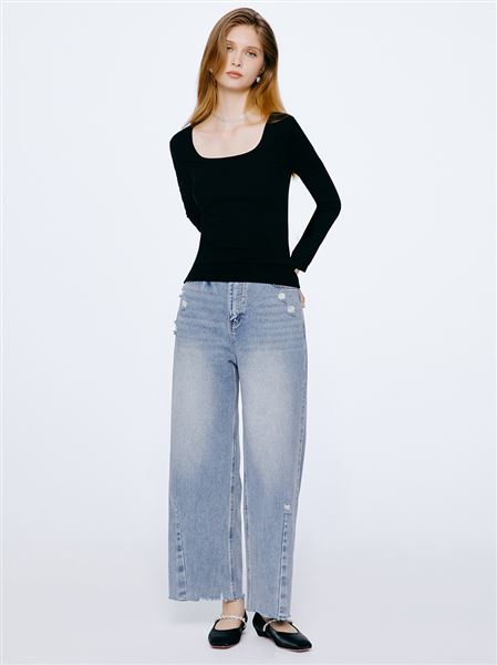 推薦穿搭 潮流刷破毛邊純棉牛仔繭形褲 請點我