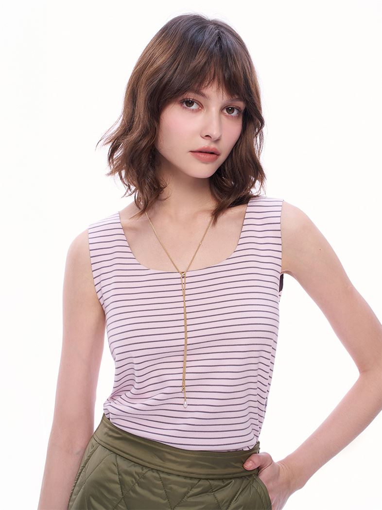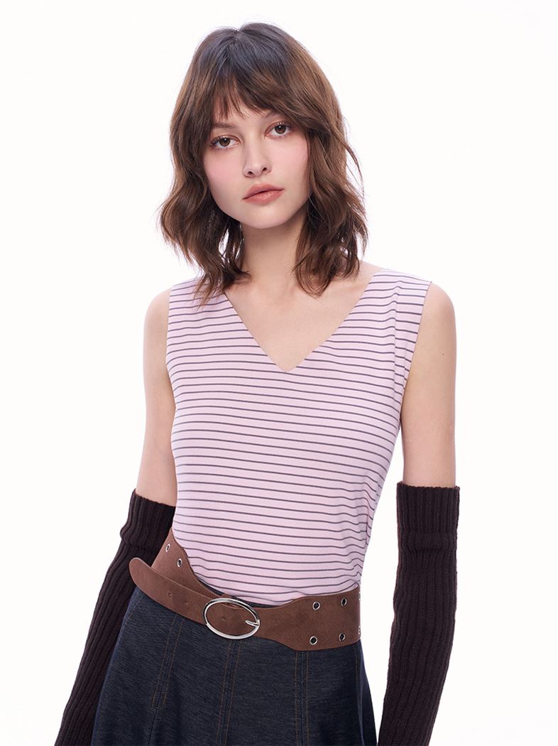 推薦同款淺藍色穿搭 翻轉美學條紋多面穿內刷絨背心-淺藍 請點我