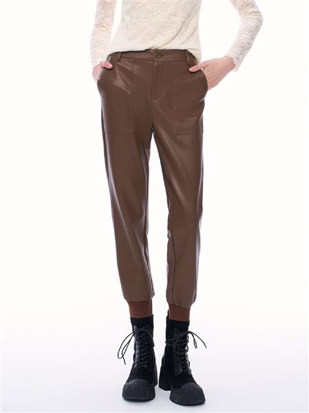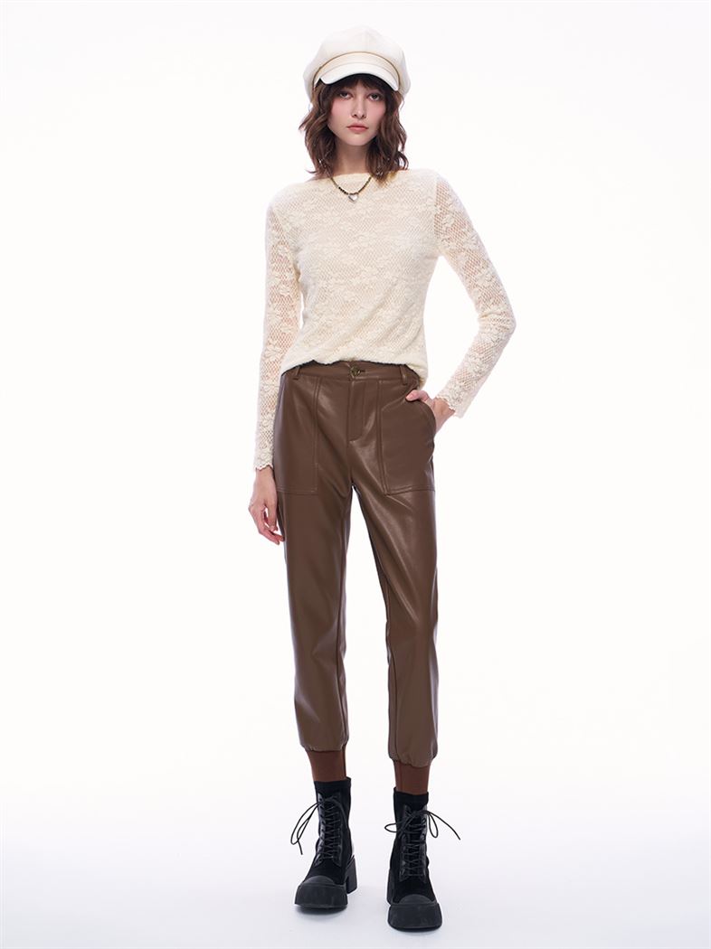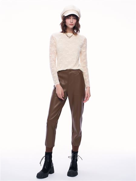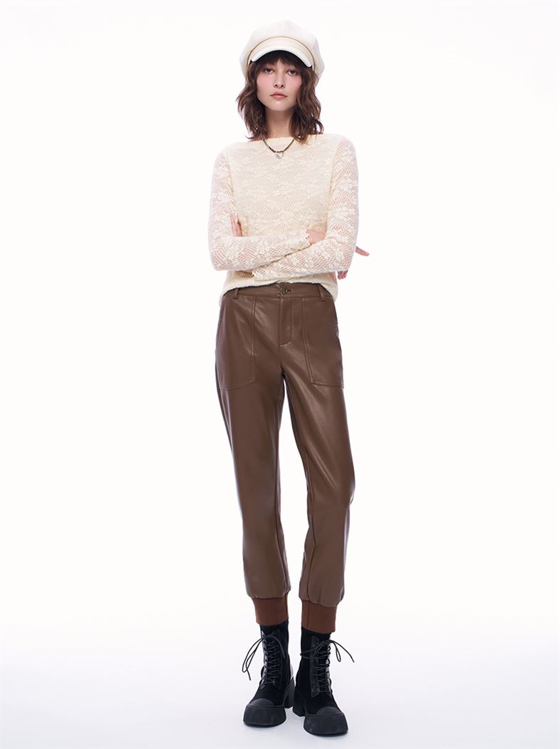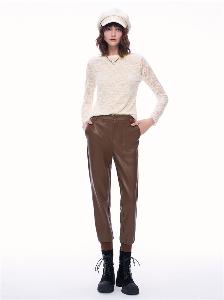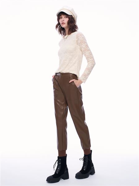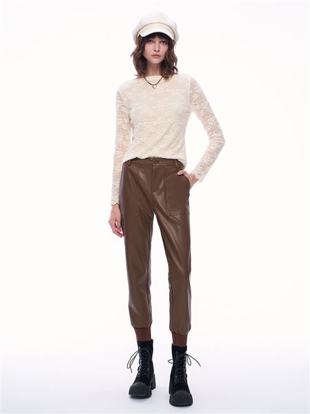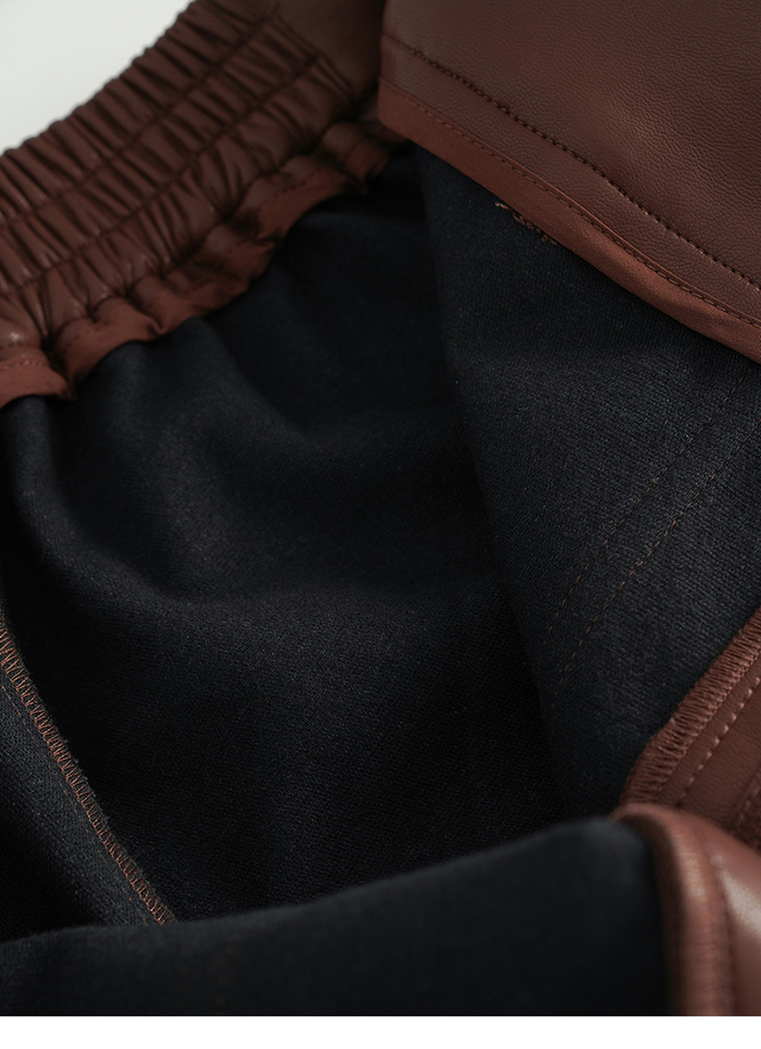推薦同款黑色穿搭 潮酷個性皮革中高腰窄管褲-黑 請點我