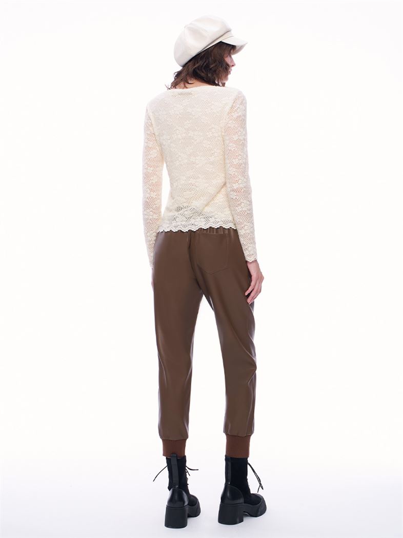 推薦穿搭 優雅迷人磨毛蕾絲上衣-米白 請點我