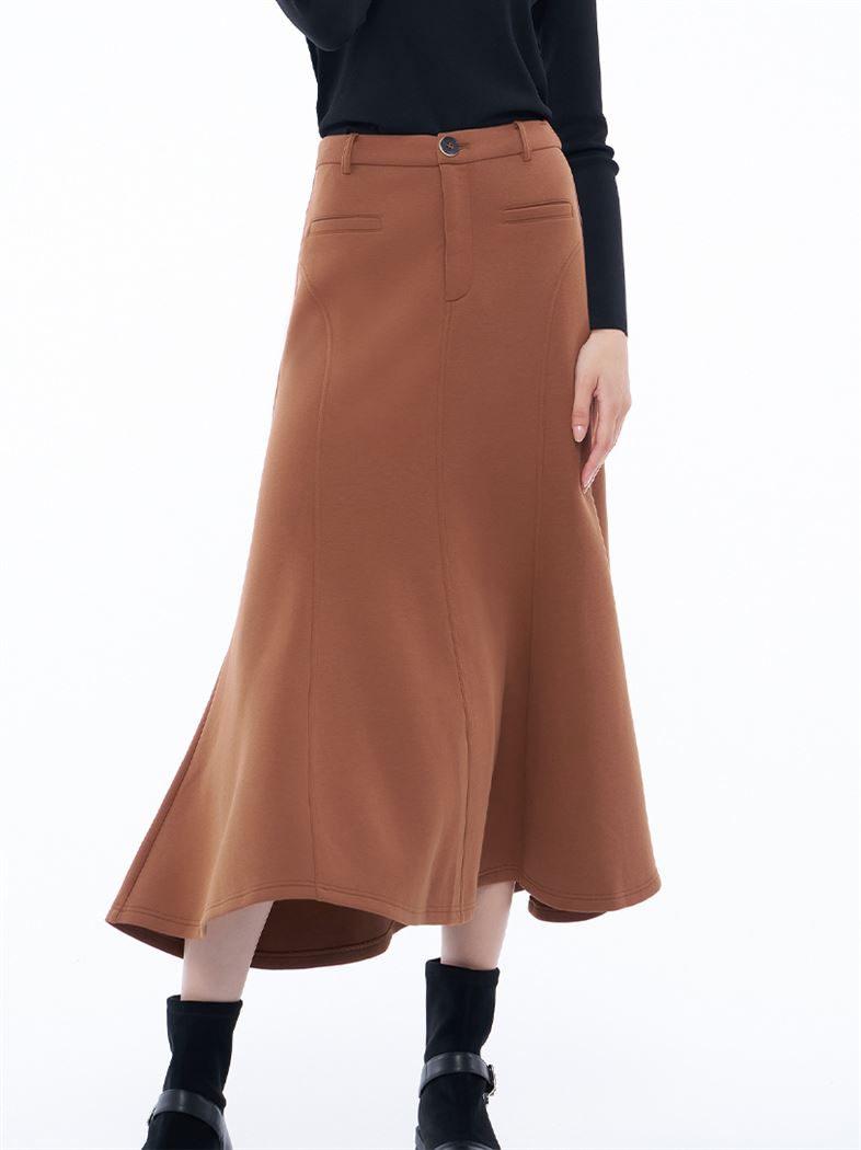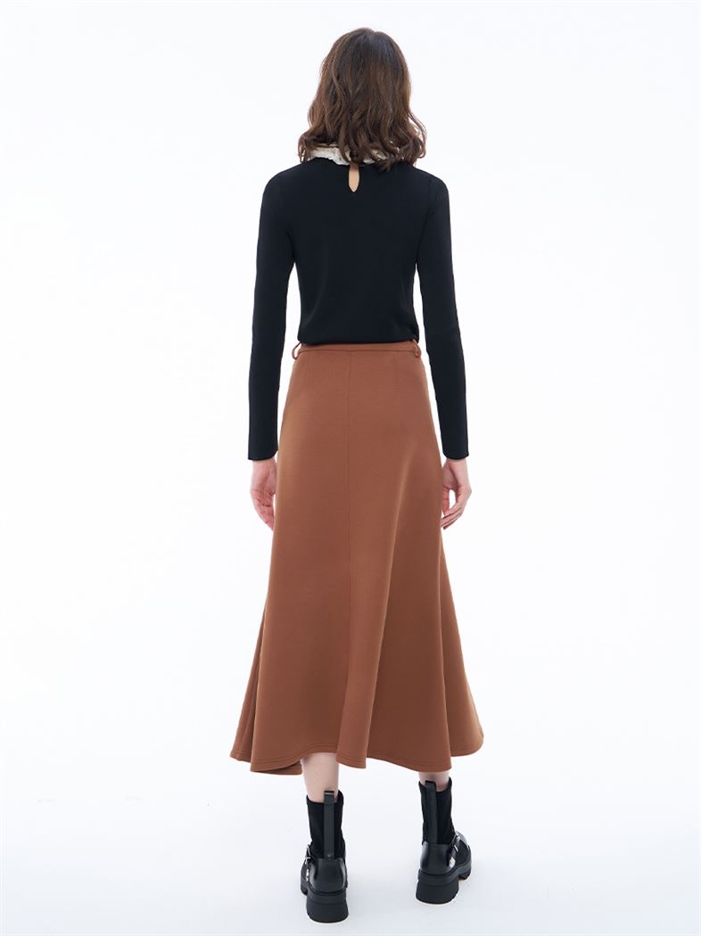 - 前片雙立體弧線、後片腰部雙打褶,視覺向內收攏