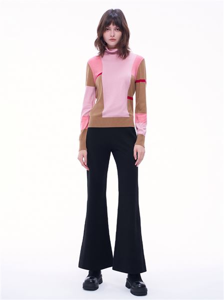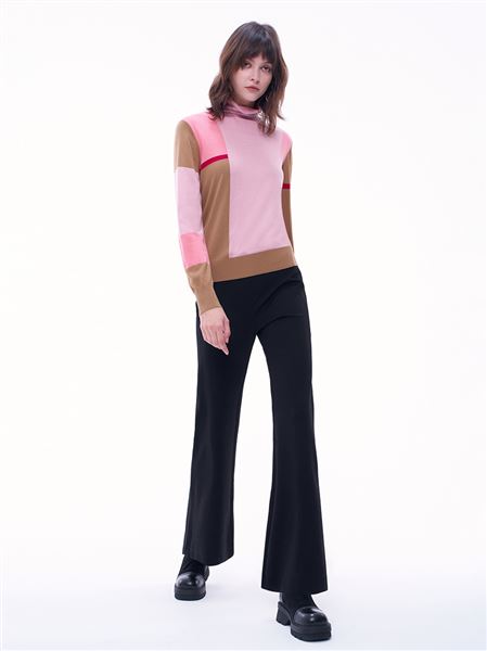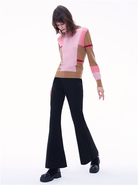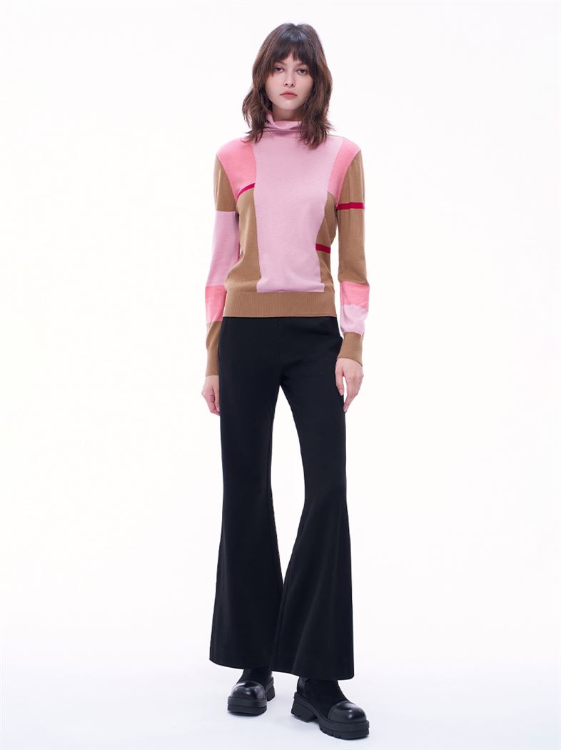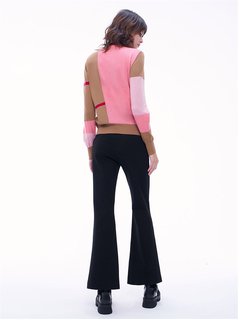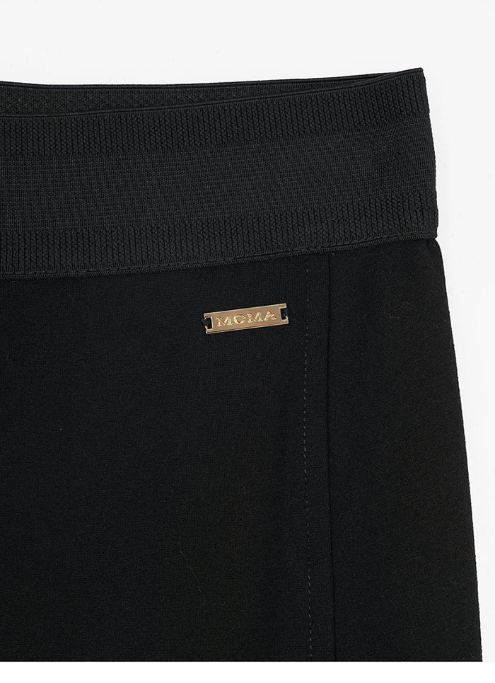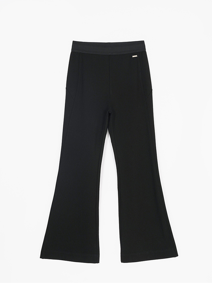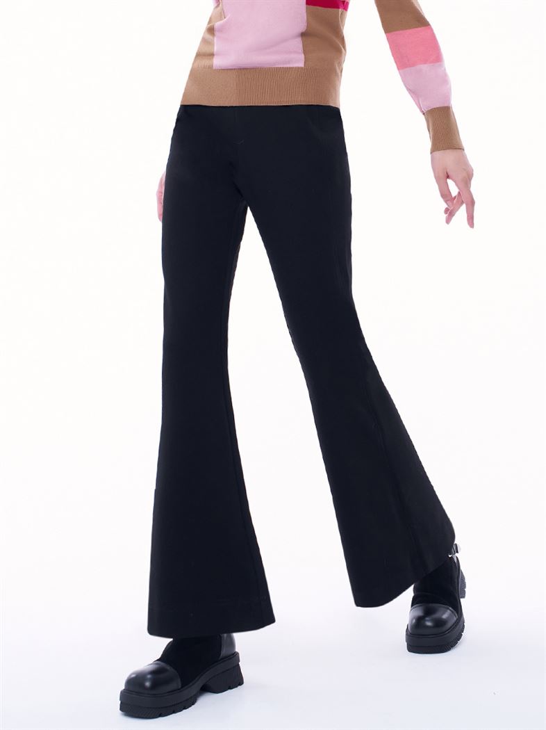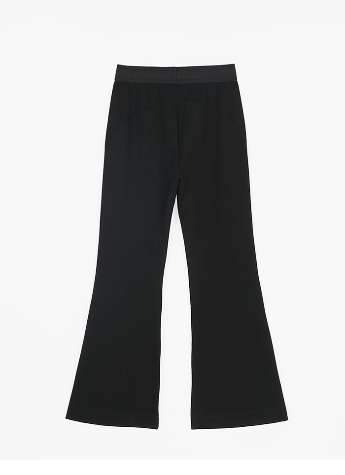 扁臀救星羅馬布高腰小喇叭褲-黑