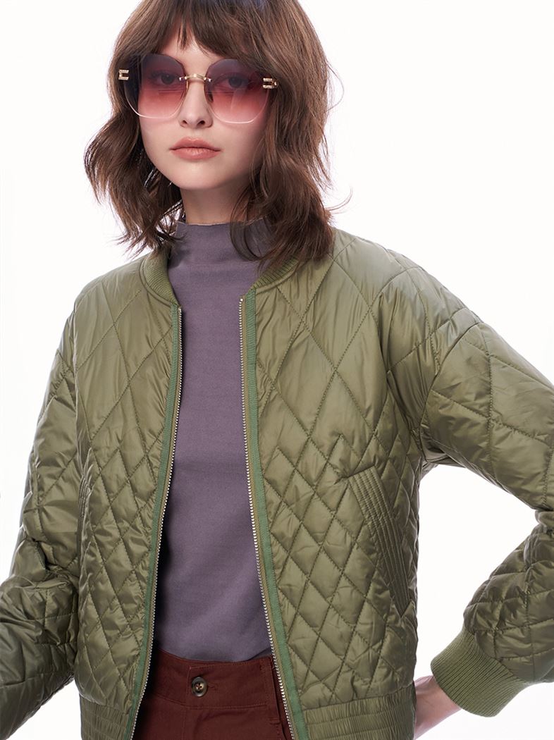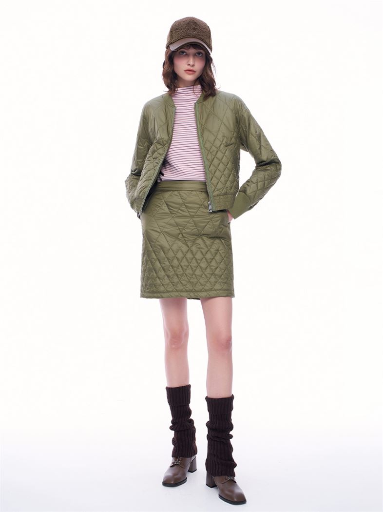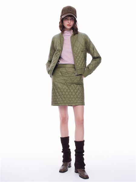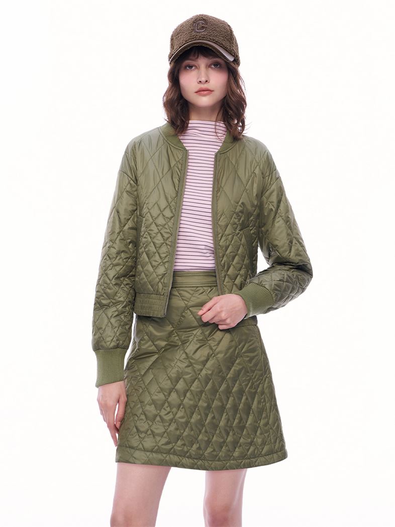 推薦成套穿搭 時髦絎縫菱格紋鋪棉A字短裙 請點我