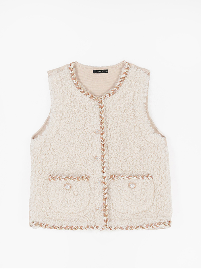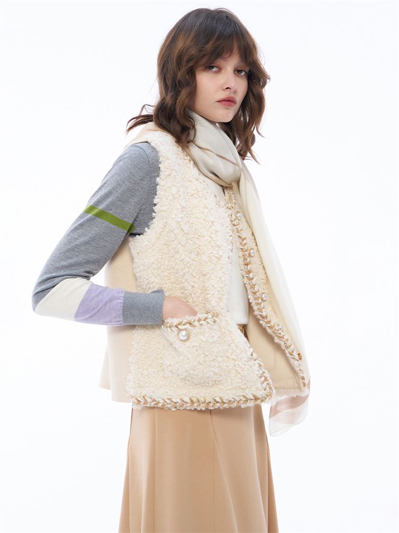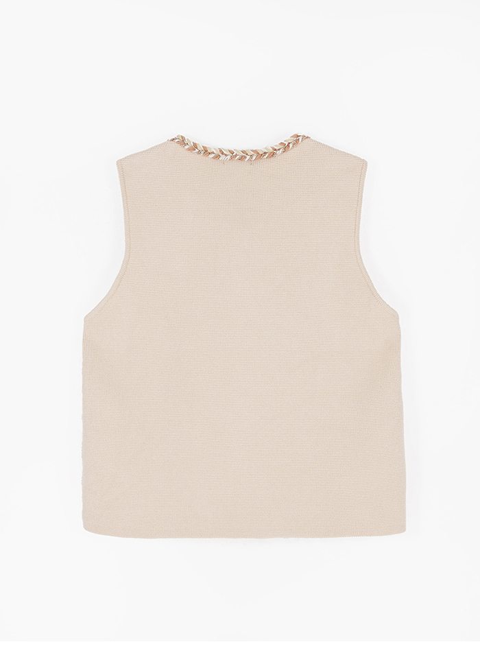 點綴編織小香風QQ毛針織背心-卡其