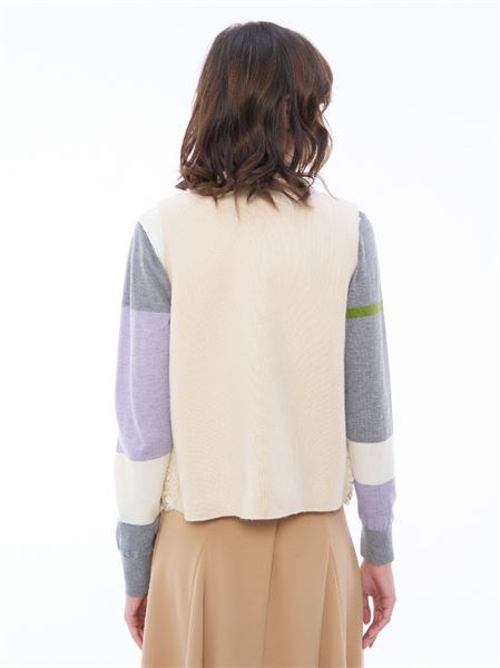 - 圓領與前襟及口袋邊與衣襬金蔥與棉線撞色麻花編