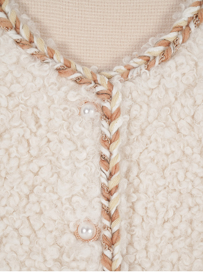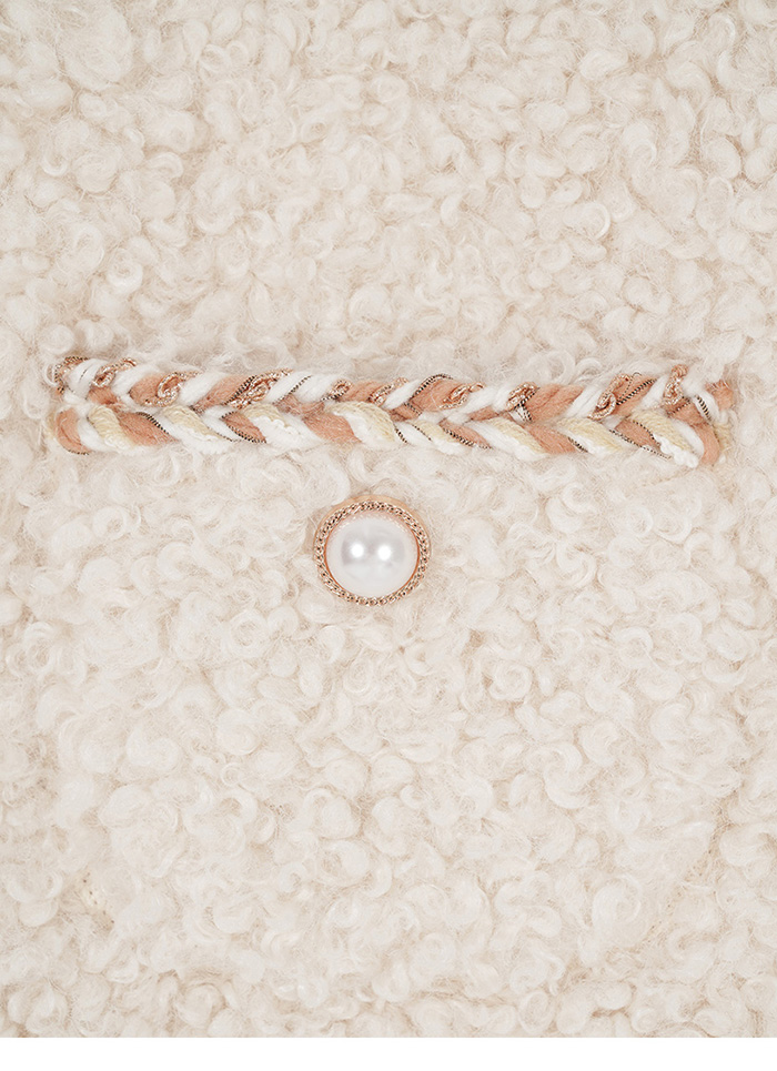 - 前襟與雙口袋玫瑰金線圈珍珠釦設計,精緻高雅